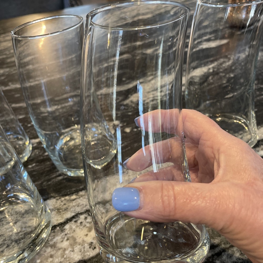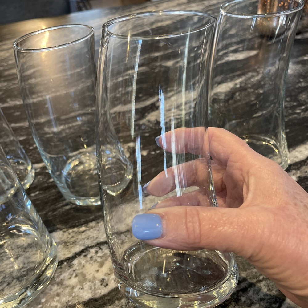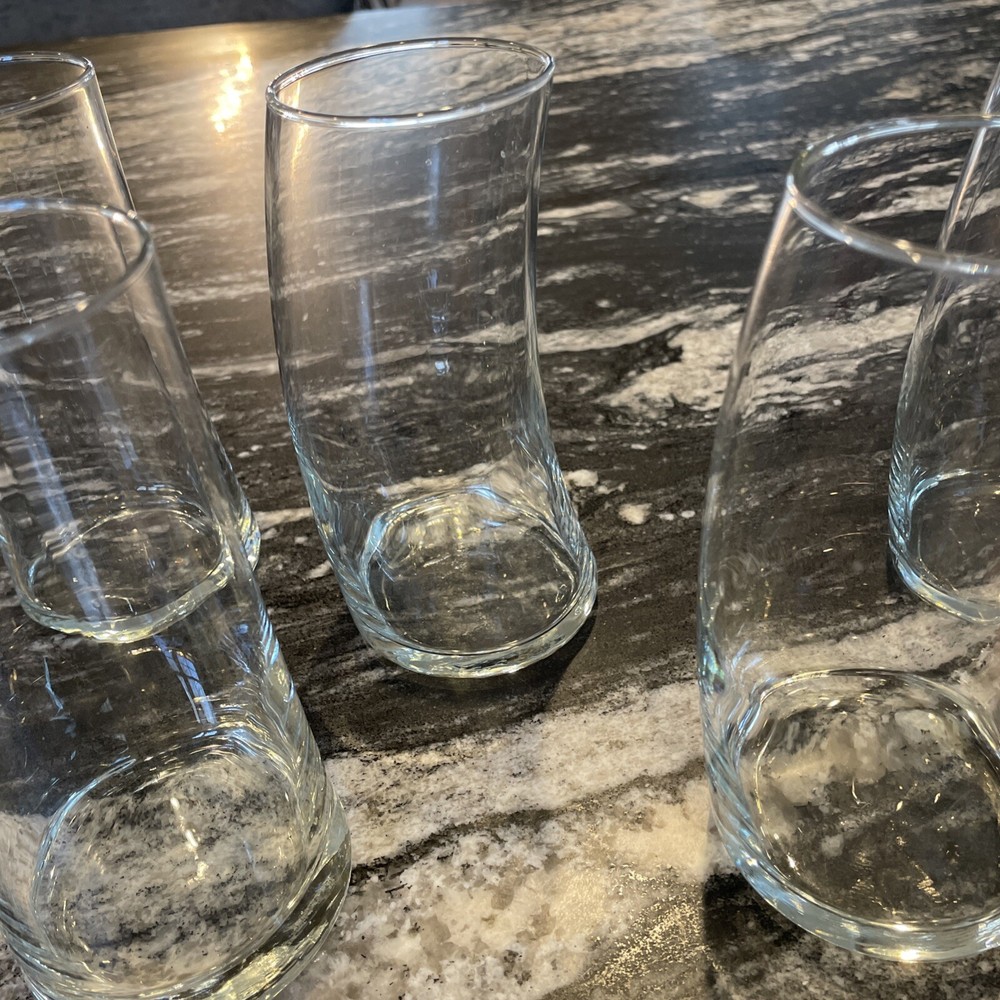 Beautiful, clean curved drinking glasses. You will definitely received compliments on this shape. Unusual