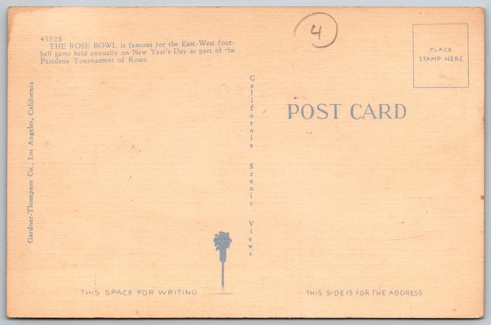 Vtg Linen Postcard Rose Bowl Stadium Pasadena, CA 1930s Own a piece of history with this linen postcard! This unique item captures a moment in time with stunning detail. Our collectible linen postcards come in various conditions, ranging from excellent to fair, and are perfect for collectors, historians, or vintage enthusiasts. Each postcard is stored in a protective sleeve and shipped in a rigid envelope for safe delivery. Returns are accepted and combined shipping is available upon request, making it easy to add this timeless piece to your collection. Explore our eBay store for more vintage postcards, photographs, and unique finds. Discover treasures that tell a story! Thank you for supporting our mission to preserve history through vintage collectibles. See High-Resolution Scan For Details. Message Me With Any Questions.