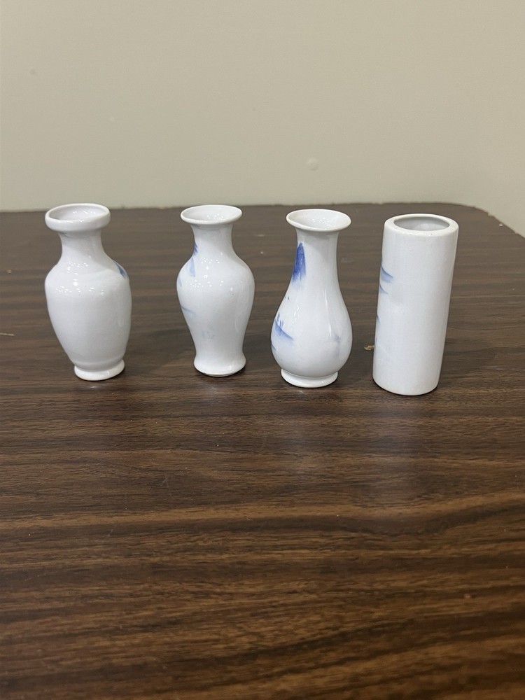 Vtg Lot of 4 Classic Mini Miniature Chinese Blue and White Ceramic Tabletop VASE. Condition is Used. Shipped with USPS Ground Advantage.