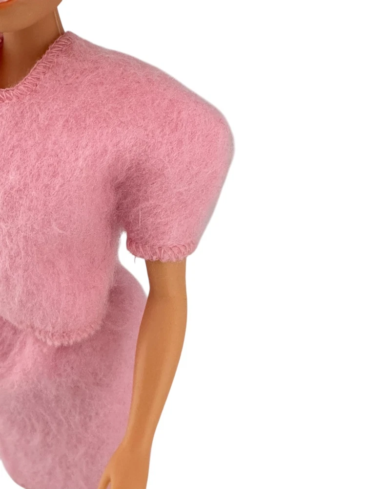 Vtg Mattel Barbie 2870 Fancy Fashions Pink Sweater Skirt Top 1986 Faux Mohair Harder to find outfit. 1980s style.