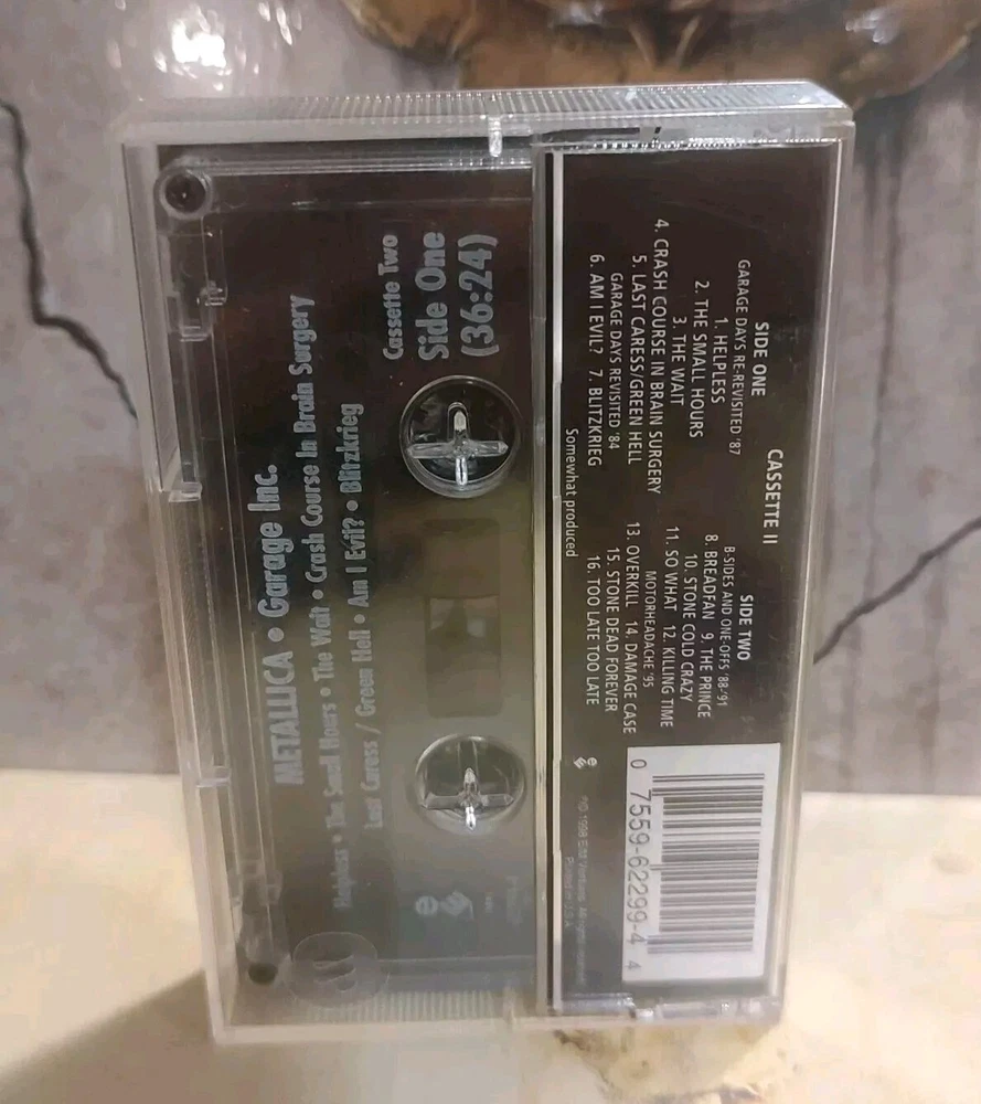 Release Year:1998Type:AlbumArtist:Les Claypool, Metallica, Gary Rossington, Jerry Cantrell, Jim Martin, John Popper, Pepper Keenan, Sean KinneyRelease Title:Garage Incgtin13:075596229944Case Condition:Good (G)Style:Hard RockFormat:CassetteRecord Label:Elektra RecordsCase Type:Jewel Case: StandardFeatures:CompilationGenre:Rock, Hard Rock, Rock & PopInlay Condition:Very Good (VG)UPC:075596229944Cassette Condition:Very Good (VG)