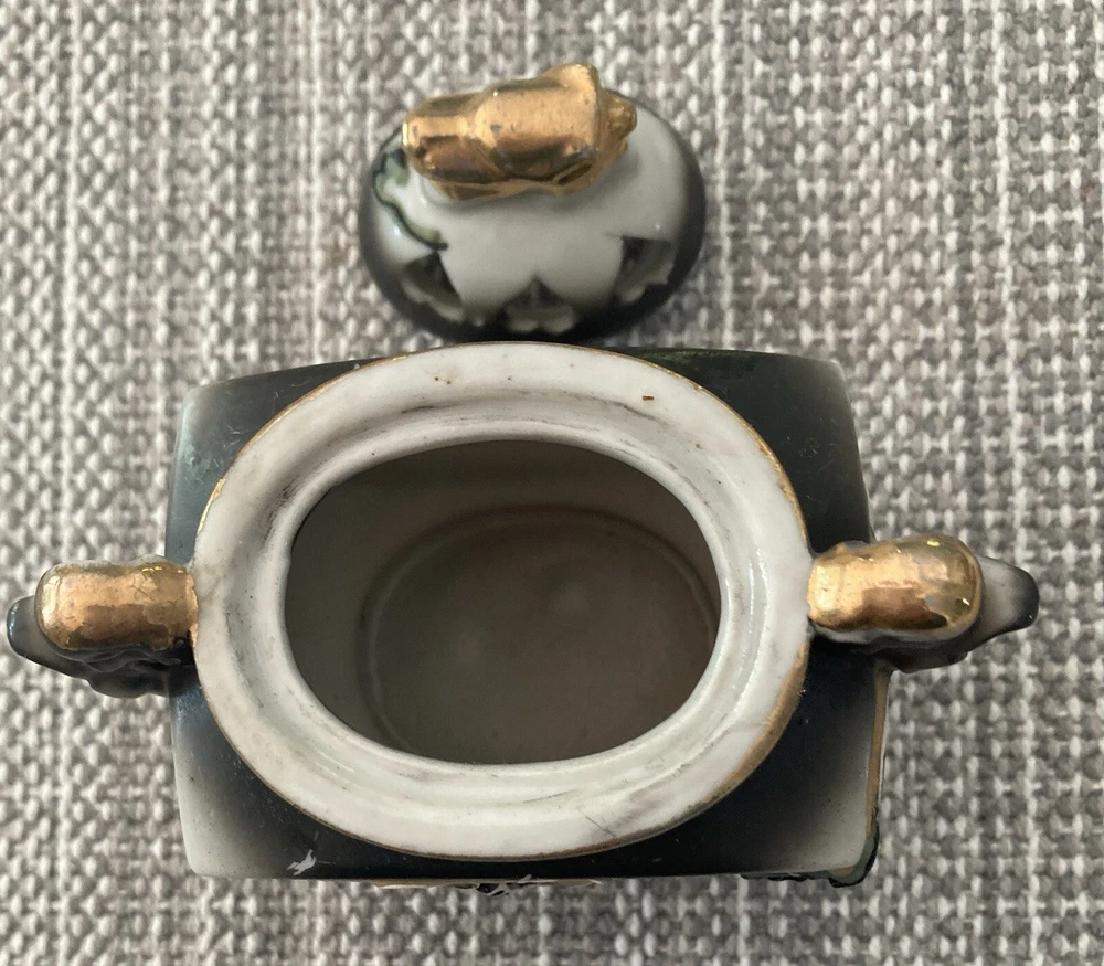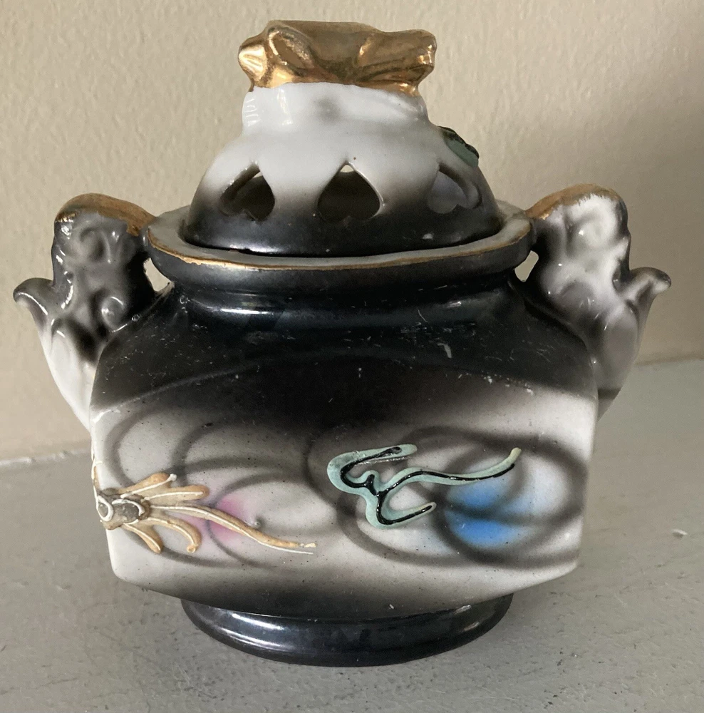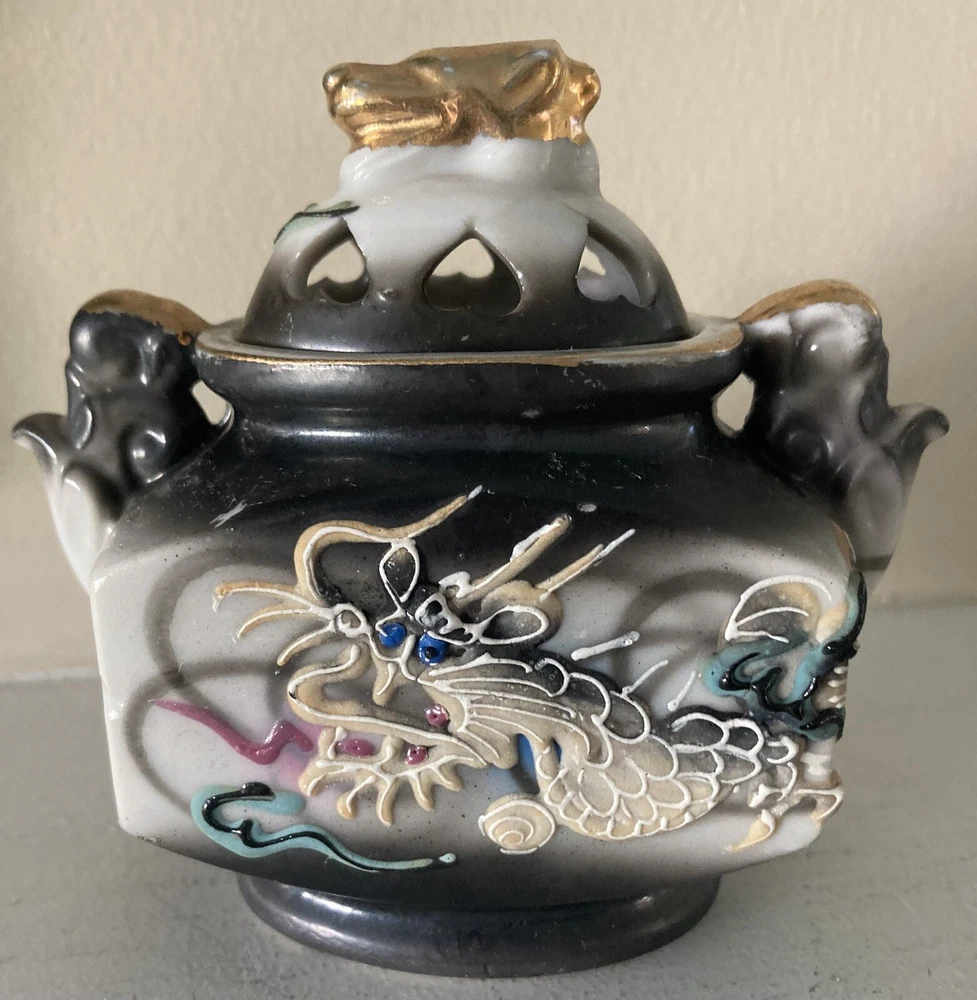 Vtg. Moriage Dragonware Lidded Incense Burner Enesco Japan Blue Eyed Gold Accent