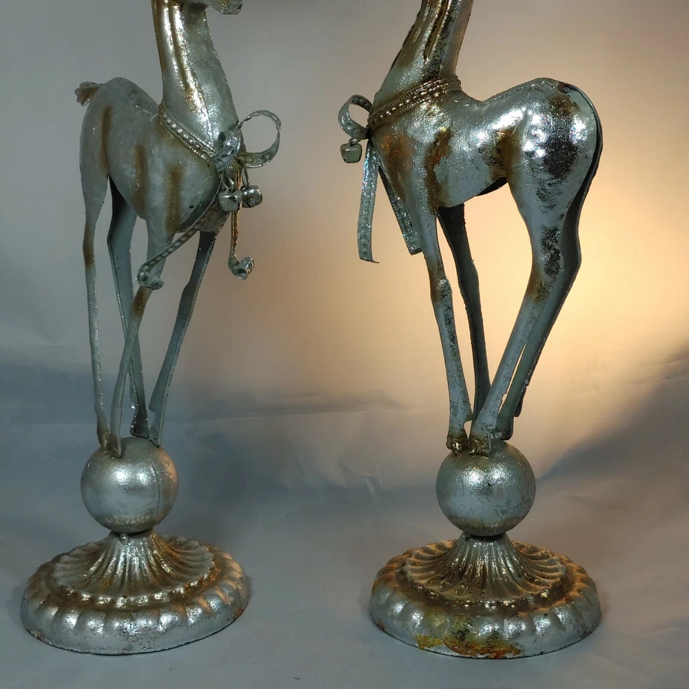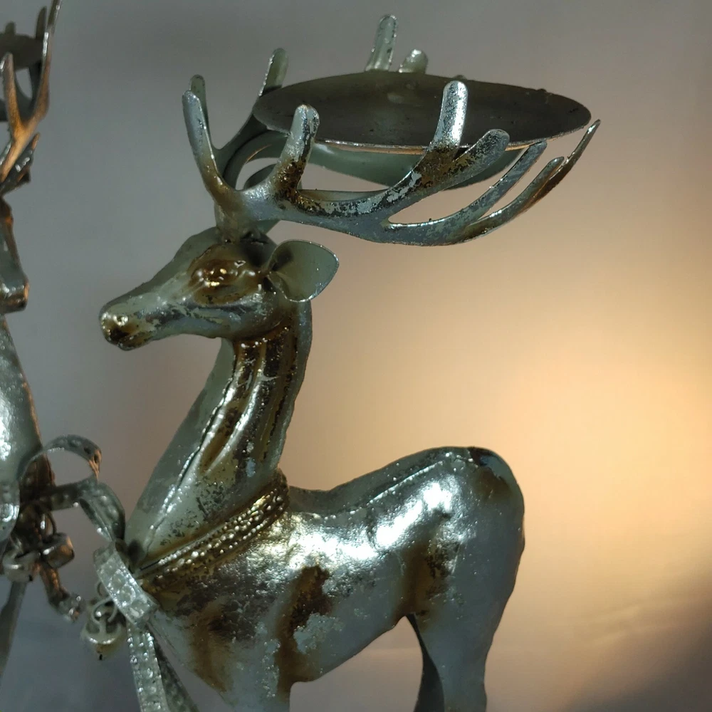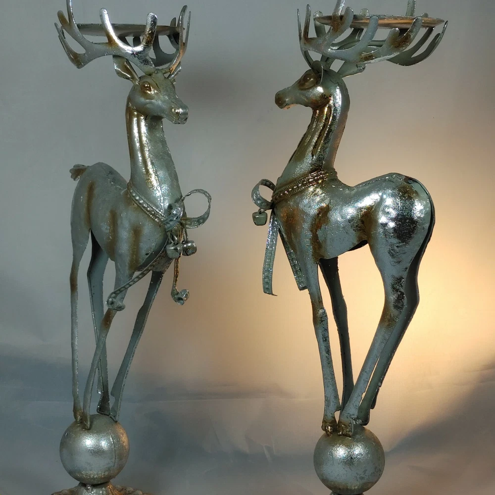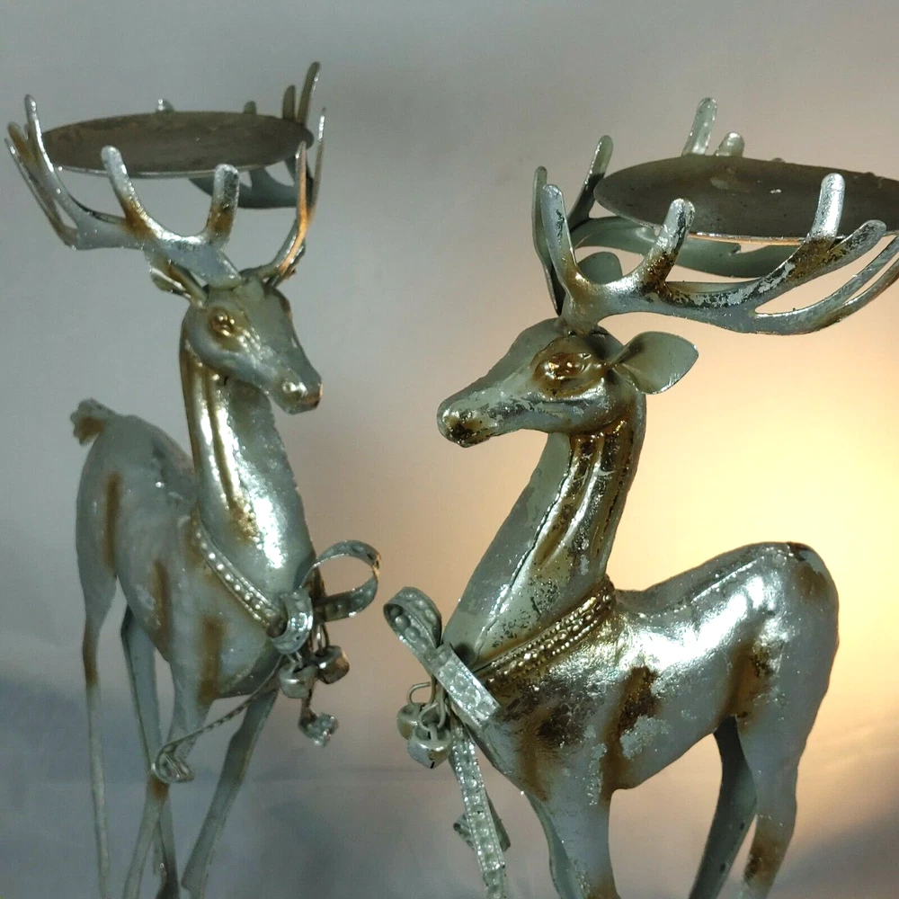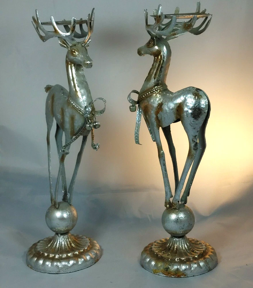 Vtg Pair of Tall Christmas Reindeer Candleholders Figurines Hand Crafted Metal Excellent condition Size: 15 x 6" each Holds a 3" pillar candle In excellent condition. Ships FAST from Canada with Tracking Thanks for shopping our store! Please Follow Our Store for Updated Weekly ItemsCDN to USA currency exchanges upon payment automatically. . ** Have a Great Day! Happy Holidays! (**)USA buyers save with currency exchange on purchase.We ship UPS, Canada Post and Fedex as postage requires. Thank you for being a valued customer!