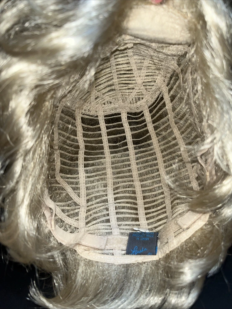 Vtg Paula Young Wig A1150 Size Average 22 Ash Blonde Gray Straight Layered Short Hair Wig. Velcro tightening straps.