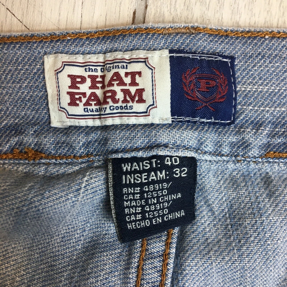 Vtg Phat Farm Jeans Mens 40x32 Baggy Wide Leg Hip Hop Y2K Light Wash 76-#1276