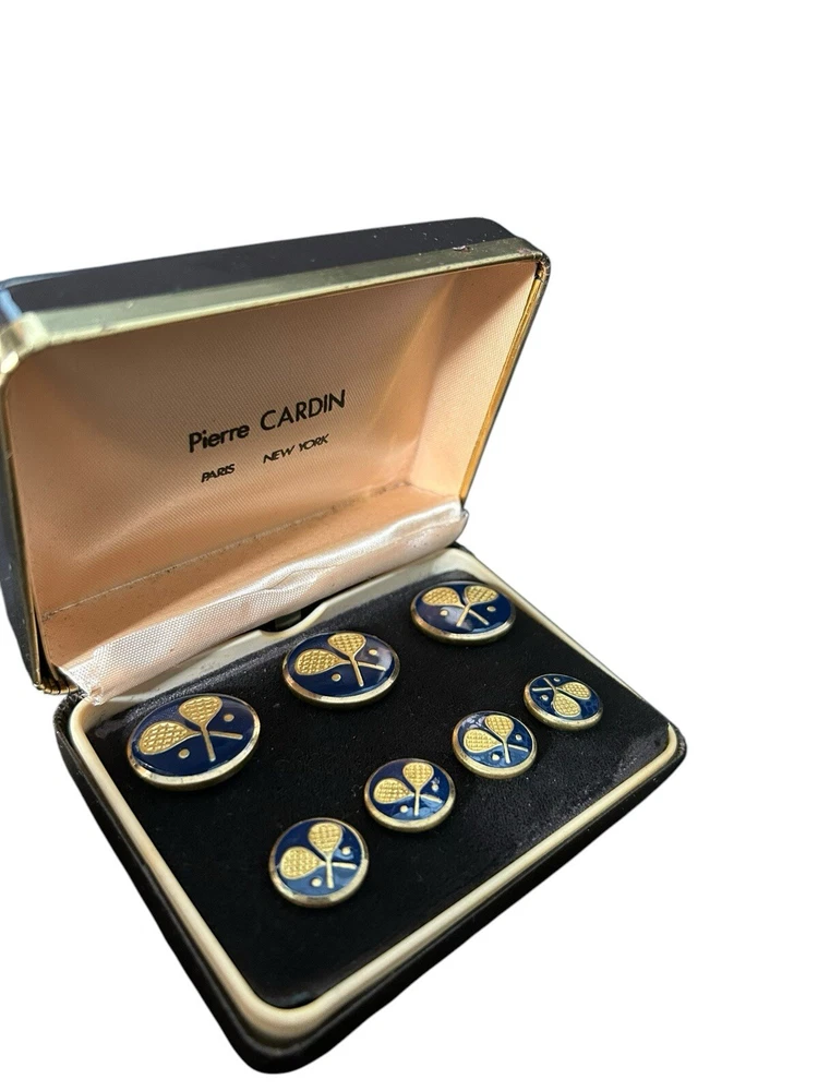 Vtg Pierre Cardin Paris New York Metal Buttons Set Enamel Tennis Rackets Motifs Good vintage condition. These seem to be unused, the box has signs of wear and aging. The buttons have some verdigris. Please study pictures carefully before purchasing Feel free to ask us any questions. Thank you for visiting our store! 11