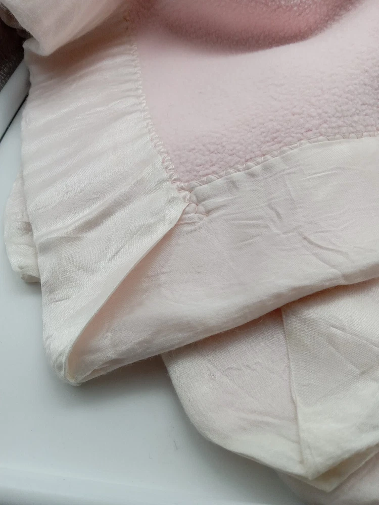 Vtg Pink Baby Blanket Satin Binding 36 x 44 Inch Loose Spot Binding No Tag