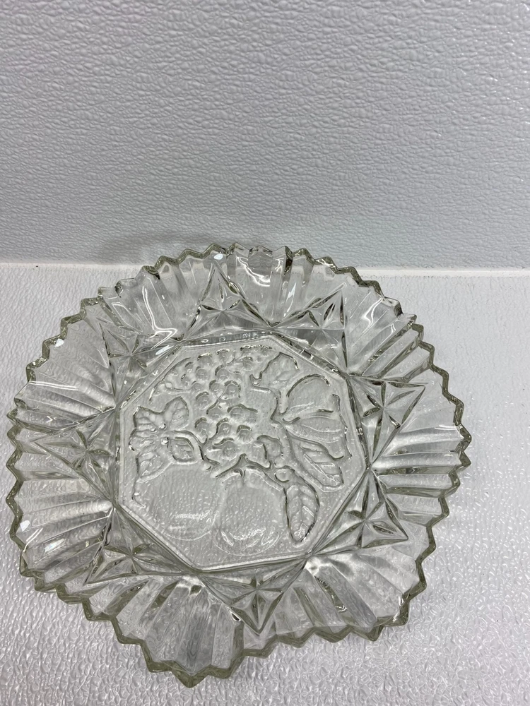 Vintage Clear Glass Pioner Fruit Pattern 10 Inch Bowl/Platter in very good condition.No scratches,no cracks,no ships WE OFFER COMBINED SHIPPING AND MULTI-ITEM PURCHASE DISCOUNTS. IF YOU HAVE ANY QUESTIONS, PLEASE LET US KNOW