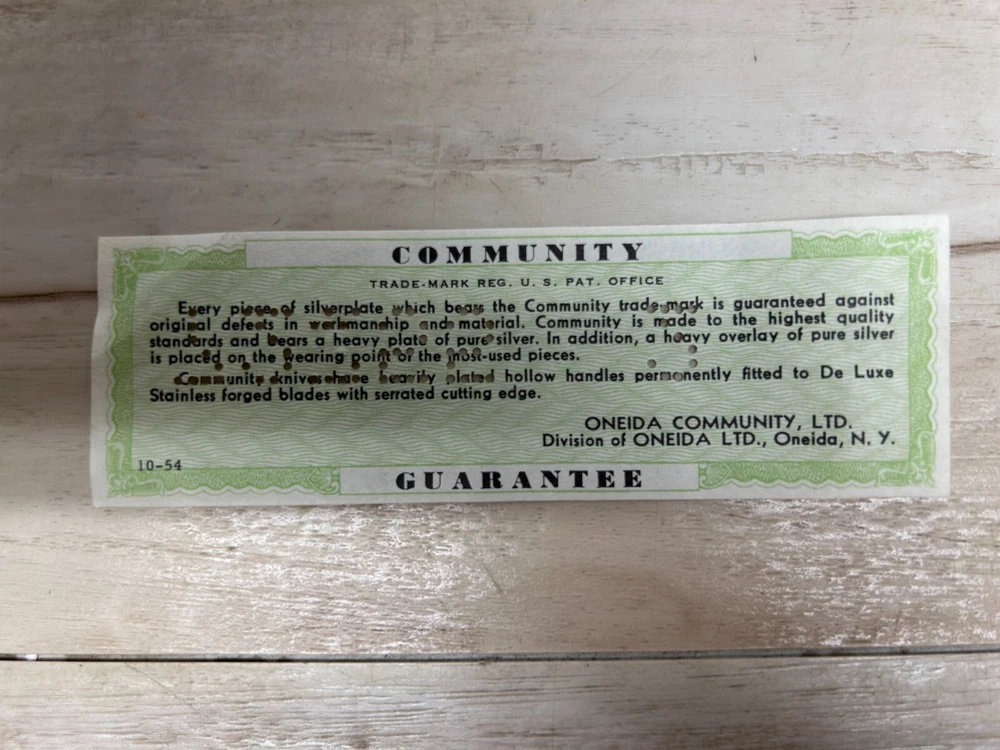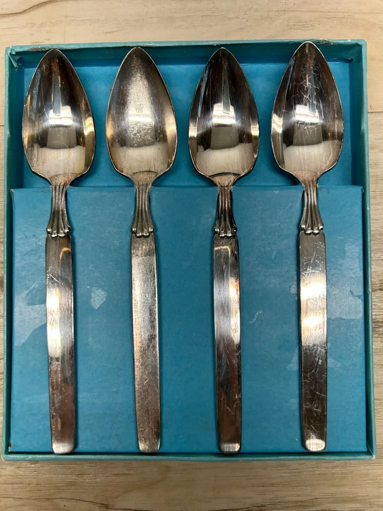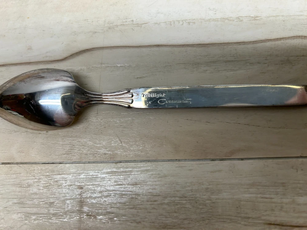 Vintage Oneida Twilight Community Silverplated Tee/Fruit/Dessert Spoons Set Of 4.All in very good condition.Looks like only one was used.The other 3 are in like new condition.Original manufacturer sertificate and box.The box have paint off on both sides.Please see all pictures WE OFFER COMBINED SHIPPING AND MULTI-ITEM PURCHASE DISCOUNTS.IF YOU HAVE ANY QUESTIONS, PLEASE LET US KNOW