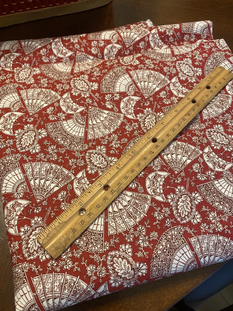 This beautiful cotton fabric is perfect for a variety of projects. With a brick red and white color scheme, and a classic hand fans floral pattern, ...cotton quilt weight fabric Measuring 2 yards in length and 46'' in width, it is a versatile and high-quality material made from 100% cotton. Whether you're a quilter, a crafter, or a seamstress, this fabric is sure to inspire your creativity. Its light weight and soft feel make it easy to work with, while its suitability for a wide range of projects ensures that it will never go to waste. The possibilities are endless! Please see all photos Smoke Free Pet Free Home Always happy to combine for shipping savings Message me with any questions, thanks!