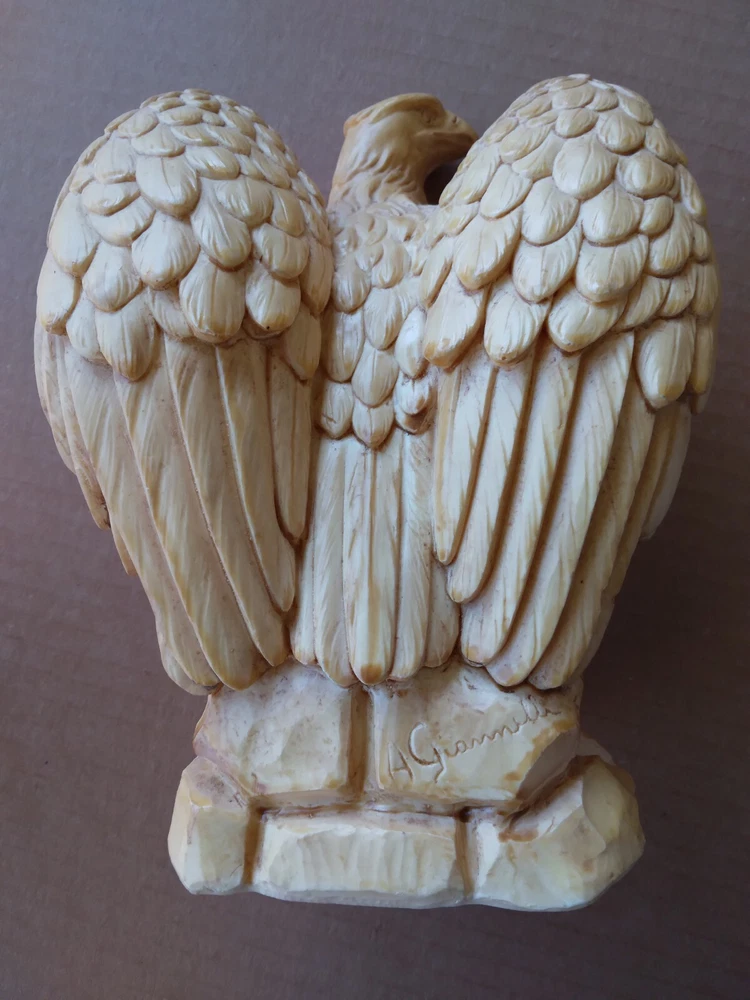 Vtg Resin Sculpture of Eagle By Italian Artist A. Giannelli very nice 8" Figure. Signed on back bottom, A. Giannelli Excellent condition no chips or cracks Approx. 8" tall, 6" wide, 5" deep I believe he is from around 1970's, no date on sculpture