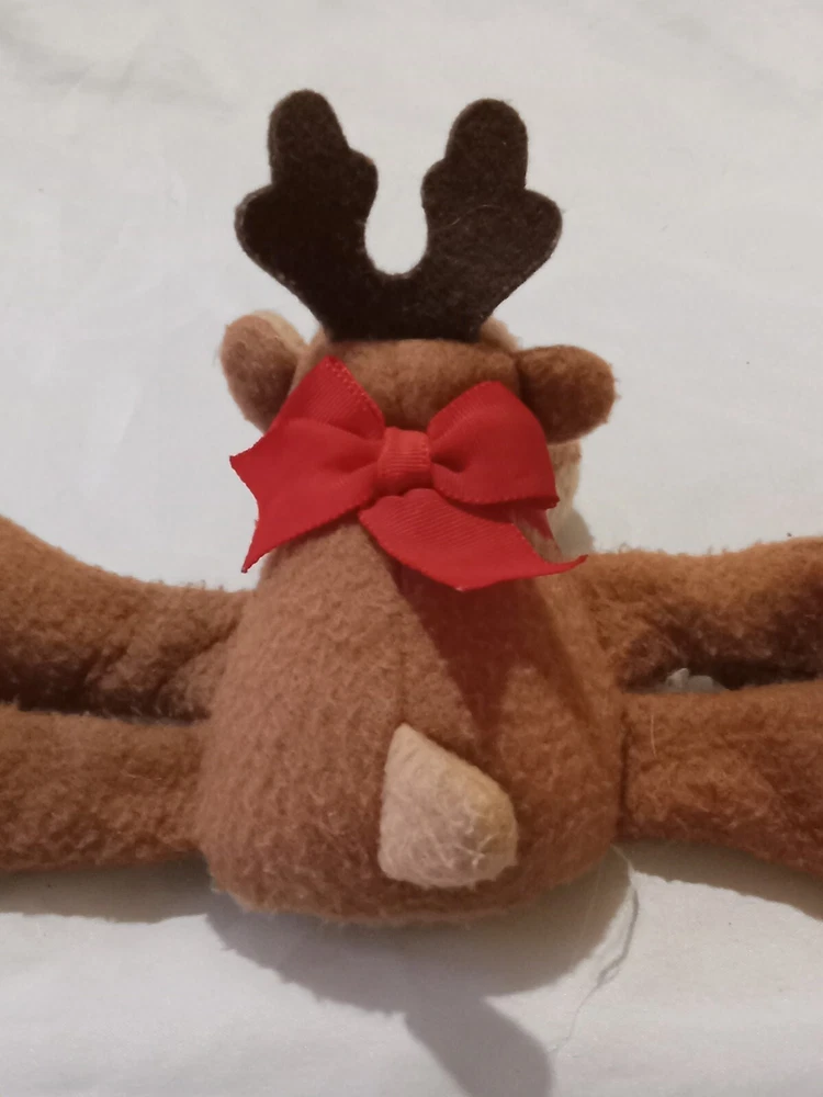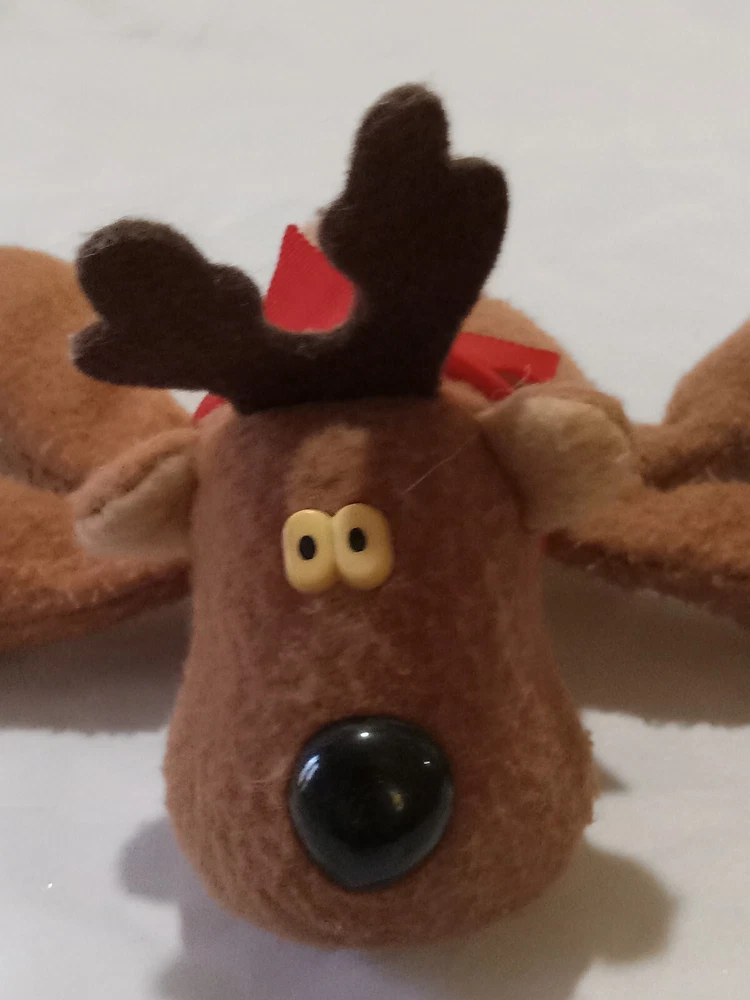 Embrace the festive spirit with the vintage Rodney Reindeer plush, a charming addition to your Christmas collection. This small-sized, brown reindeer, featuring the classic Hallmark fade tag and crossed eyes, brings a touch of nostalgia to your holiday decor. Adorned with a playful red ribbon, Rodney is a perfect accent for your mantle or a cozy spot on your Christmas tree. As a retired piece from the beloved Reindeer character family, this plush captures the essence of the season's warmth and joy. Whether you're a collector or seeking a unique Christmas ornament, Rodney Reindeer is sure to be a conversation starter and a cherished part of your holiday traditions. 9 inch