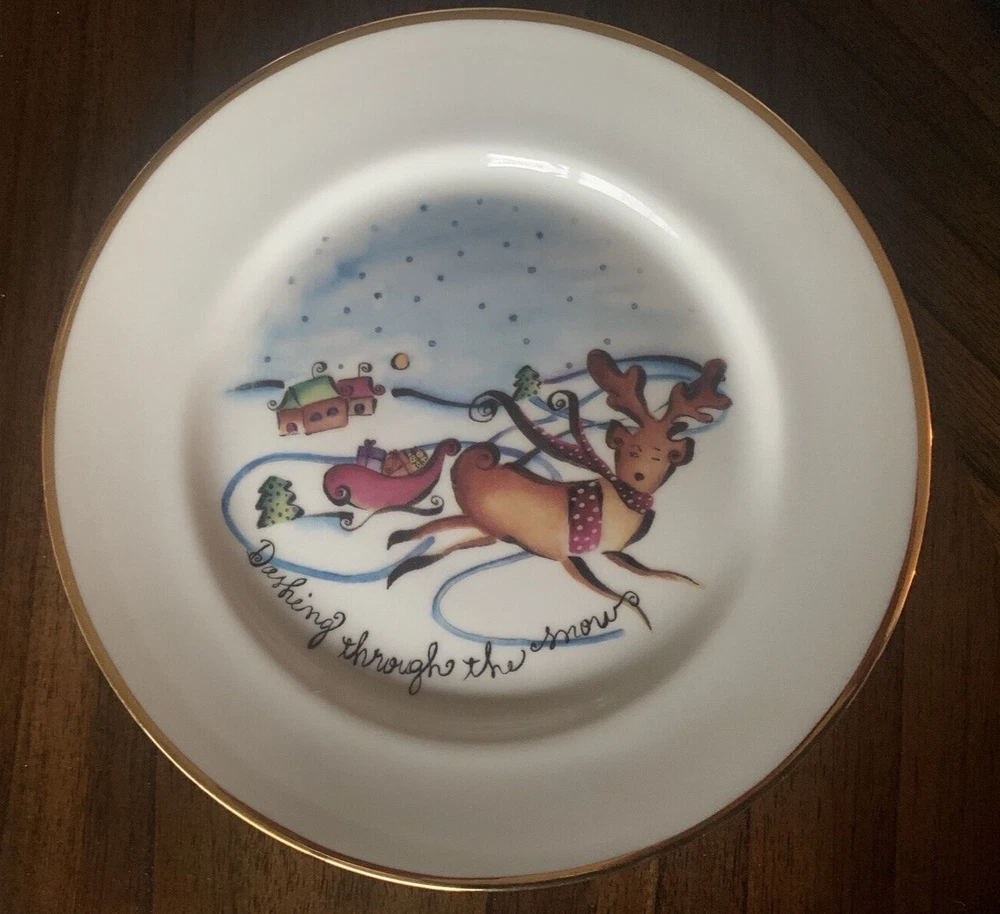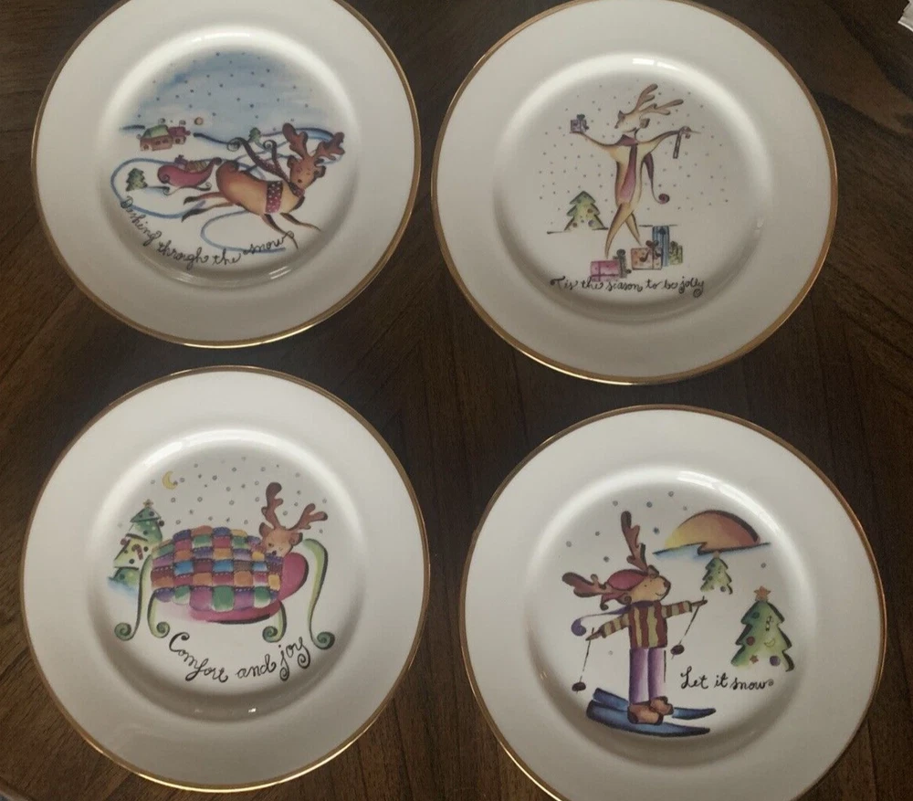 Vtg Rosanna Italy Reindeer Christmas Plates Set Of 4 Gold Rim 8" Holiday Plates Excellent pre-owned condition. No visible flaws. -SKU E24-060 Questions? Please ask. Ships next business day. Offers welcome.