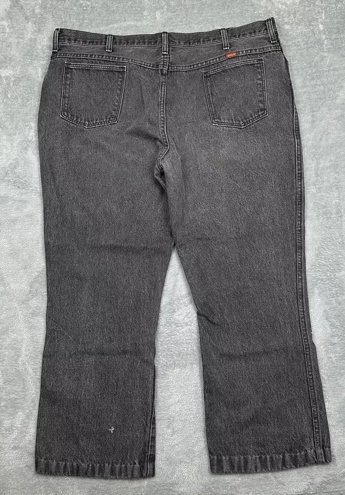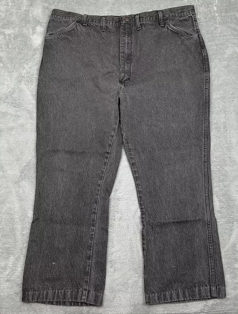 Vtg Rustler Jeans Mens 46x32 (Fit 42x27.5 Hemmed} Faded Black Straight USA READ One small hole in each bottom portion of pant leg and faded but otherwise in good pre-owned condition and laundered. Please see measurements in photos. I ship next business day, but sometimes same business day and Saturday if order is paid for early enough. Please let me know if you have any questions. I am open to offers!! Feel free to look at other items in my store! Thanks!