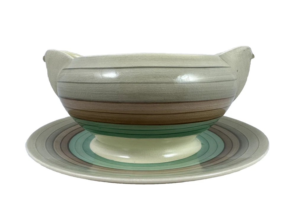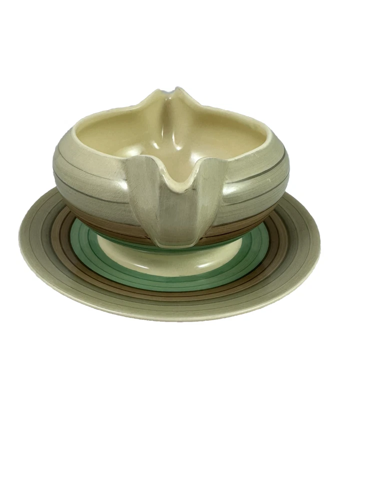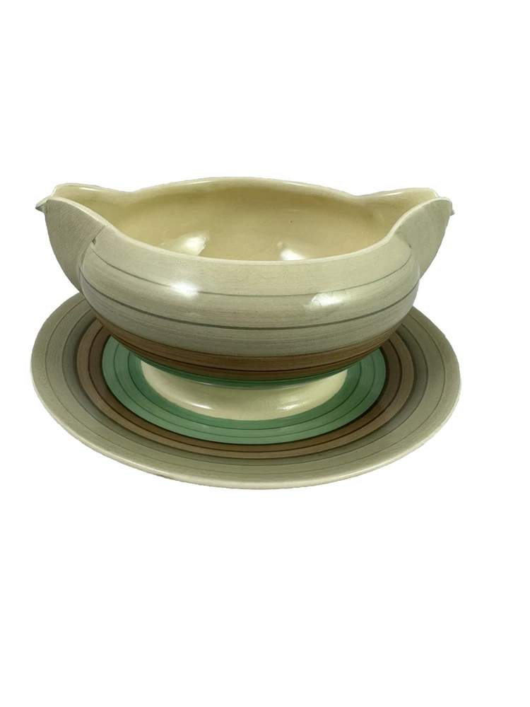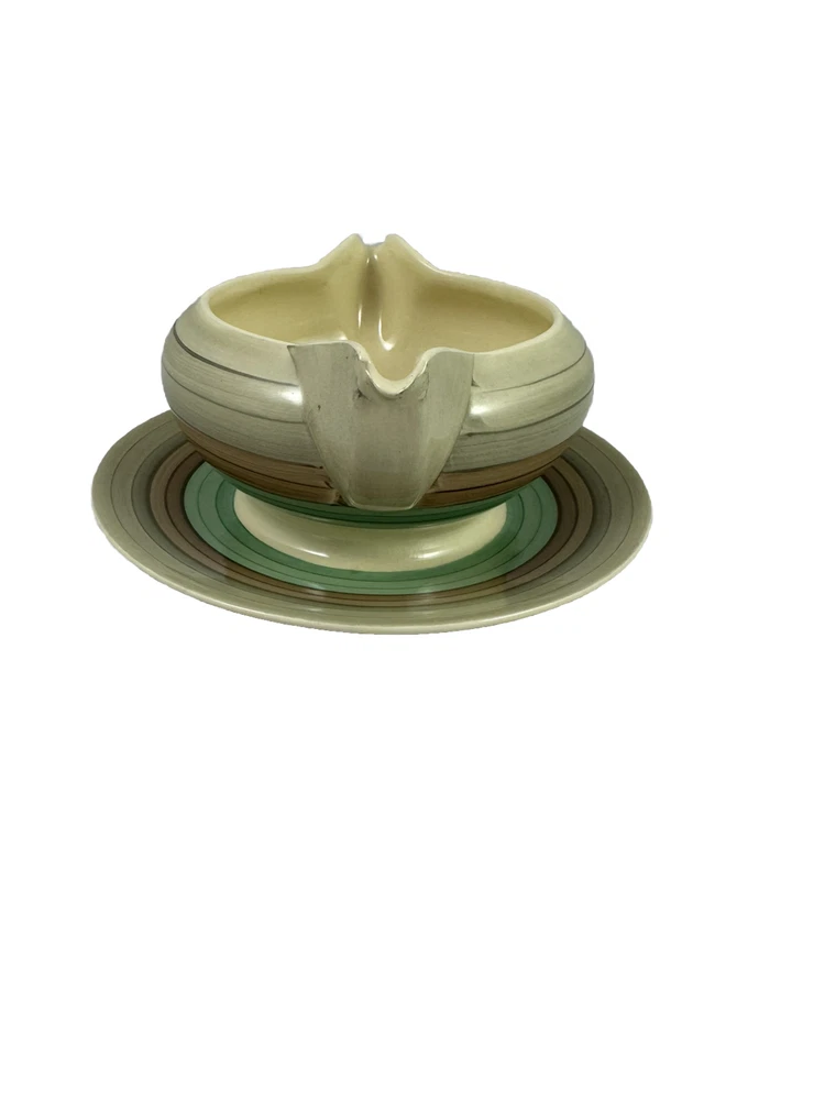 DESCRIPTION: Vtg SUSIE COOPER Wedding Ring Gravy Boat & Underplate Art Deco Earthenware Welcome! Some crazing. Great nearly antique condition. No chips, cracks, repairs, etc. Please scroll to the upper left-hand side of this page to view pics that detail overall condition. Thank you for browsing and please contact me if you have any questions! Buy with confidence! I strive for 100% customer satisfaction! PAYMENT: I kindly request payment for your item within 4 days of your agreement to purchase. SHIPPING: The shipping cost (if applicable) will be calculated from my zip code (85743) to yours. I will combine shipping if you buy multiple items from me that I can fit into one box. Breakable and delicate items will incur a $1.00-2.00 handling fee as they require extra packing material to prevent breakage. Any breakables will be packed with TLC and insured. International buyers, please do not ask me to fraudulently ship merchandise to you as a gift. You are responsible for any import duties/tariffs.