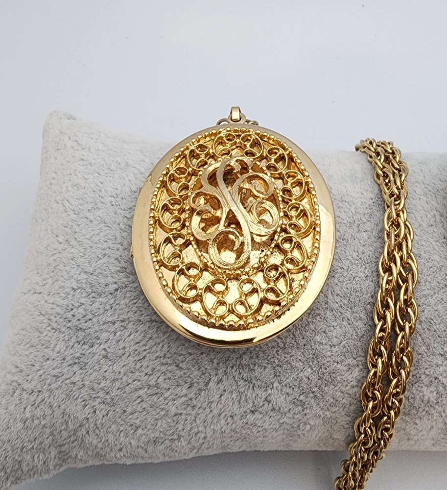 Vtg Victorian Style Sarah Coventry Filigree Chain Locket Pendant Necklace Large Locket Is In Great Shape (Tidbits Of Photos Left). Chain Shows Signs Of Wear. See Pics For Details.