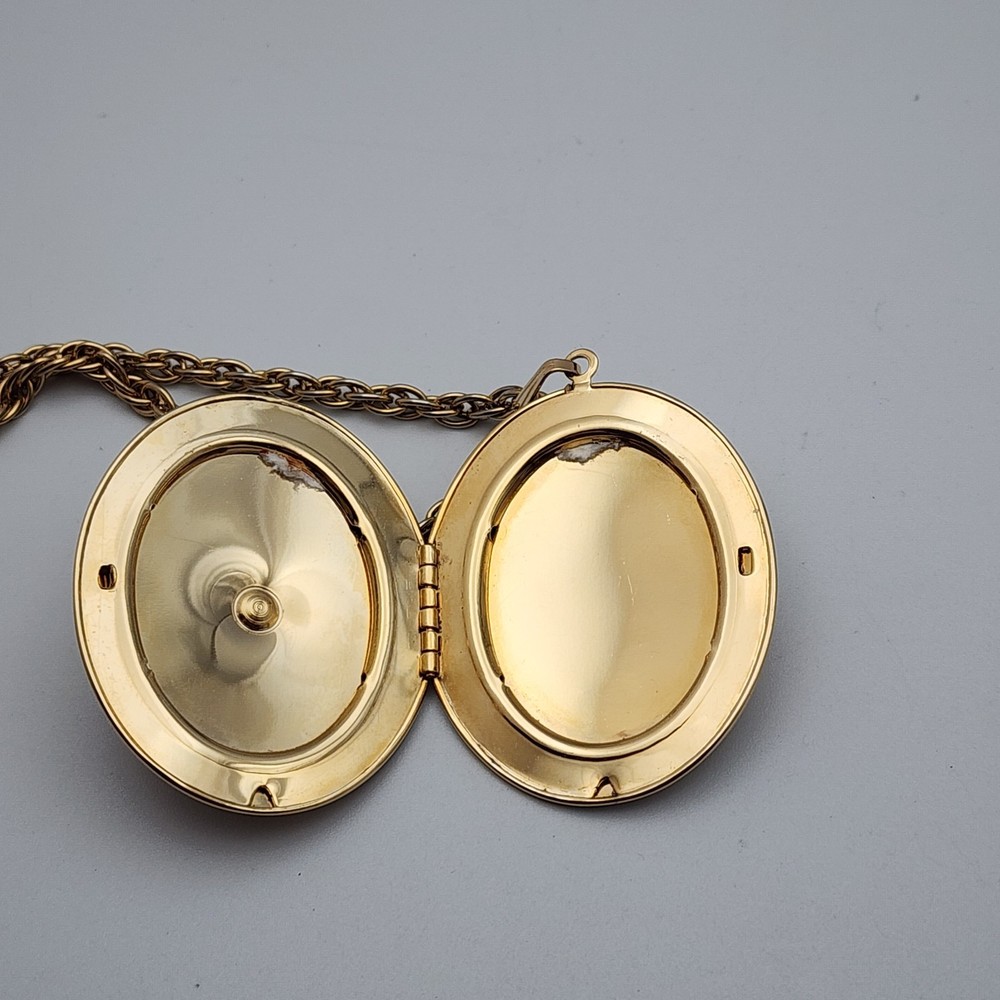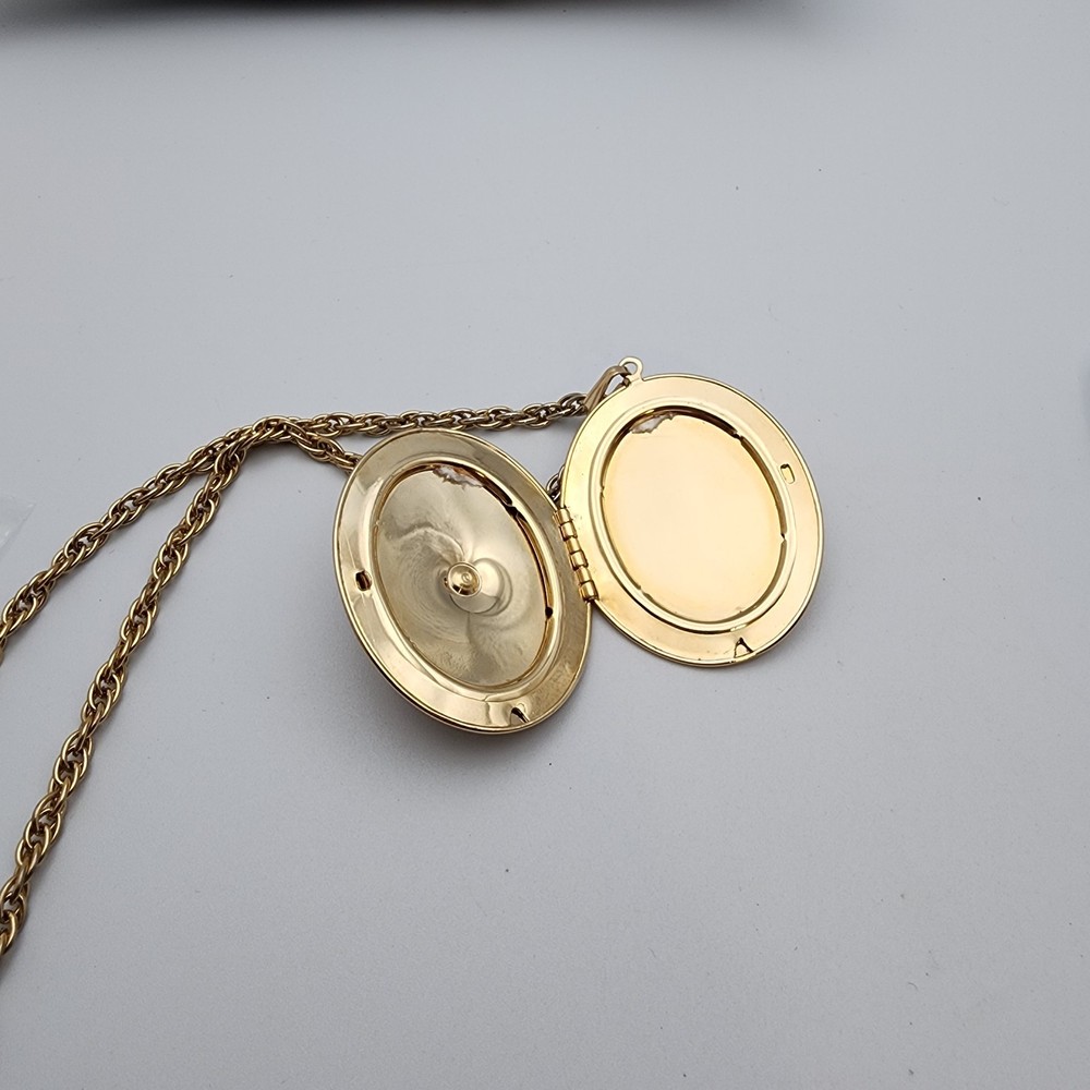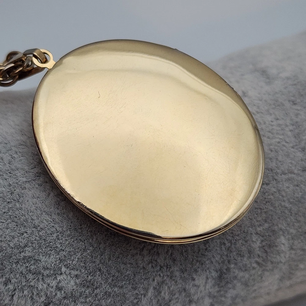 $ 10.5614k Gold Filled Oval Etched Flower Locket Pendant