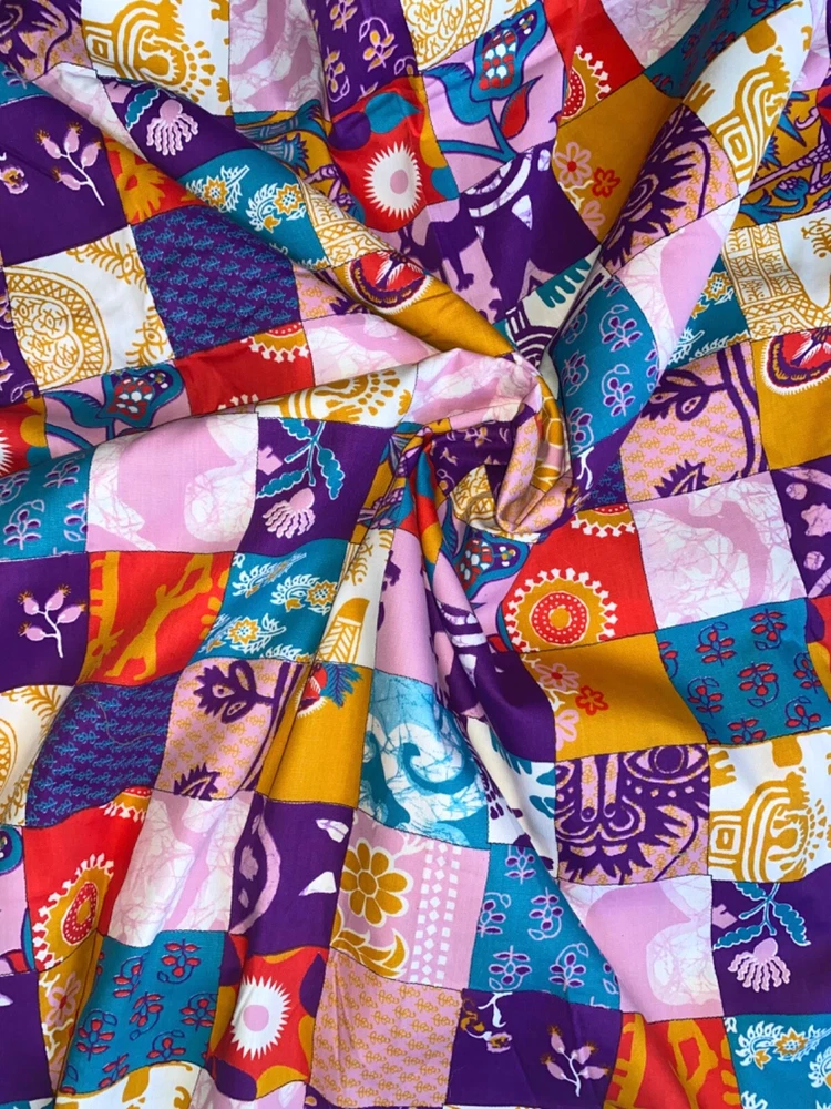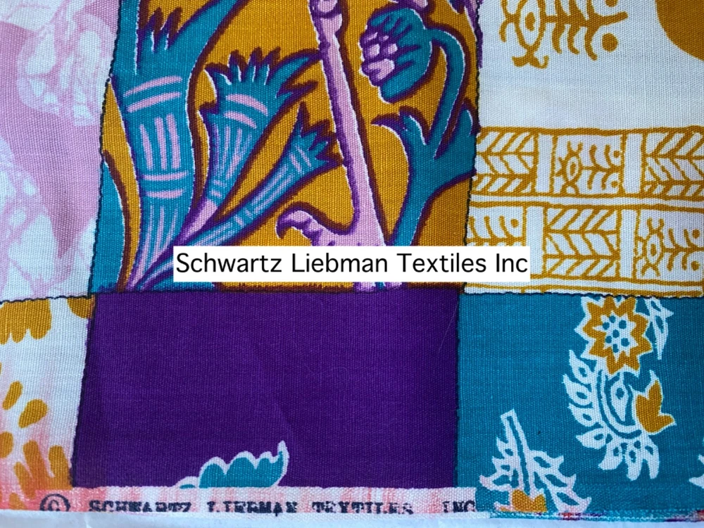 80s vintage Schwartz Liebman fabric quality, soft, cotton cloth: 44" wide by 4.05 yards long "Cheater Quilt" style with bright colors and primitive ethnic designs un-washed .. un-cut clean and fresh no smoking no cats fast shipping