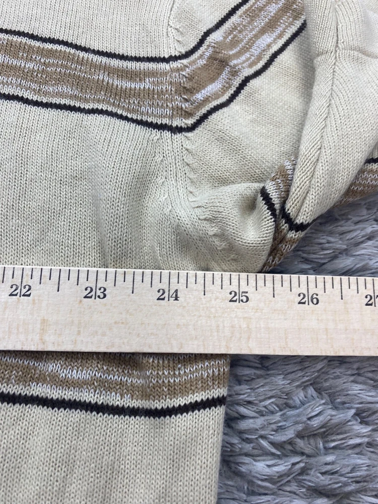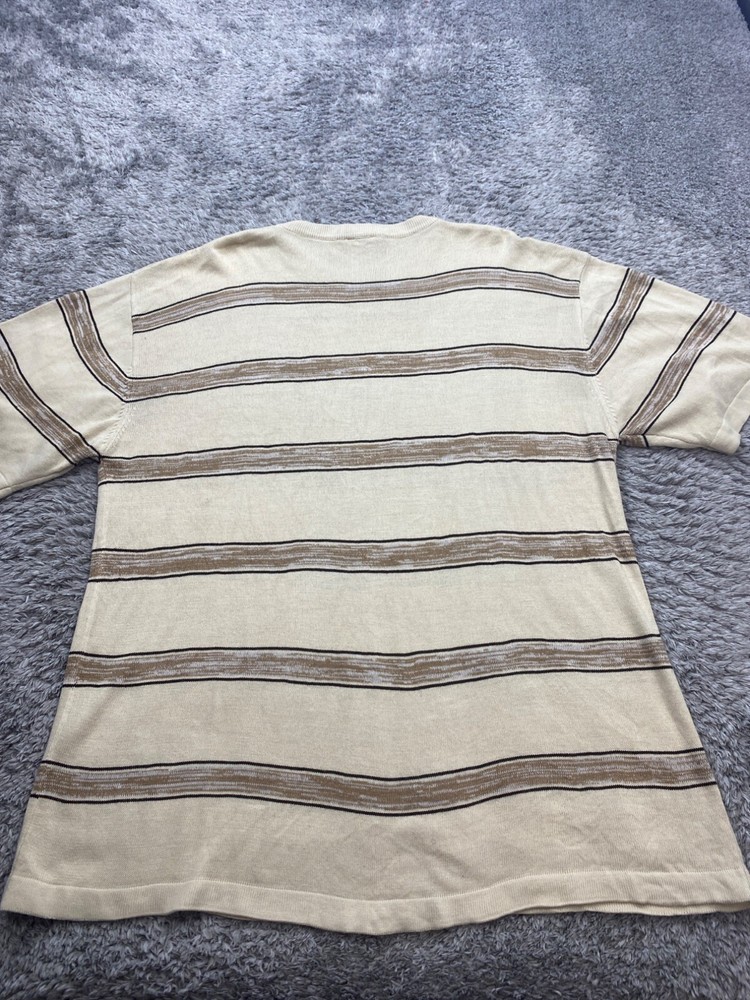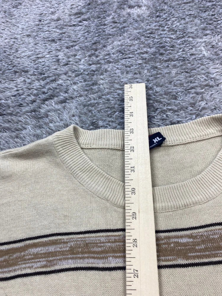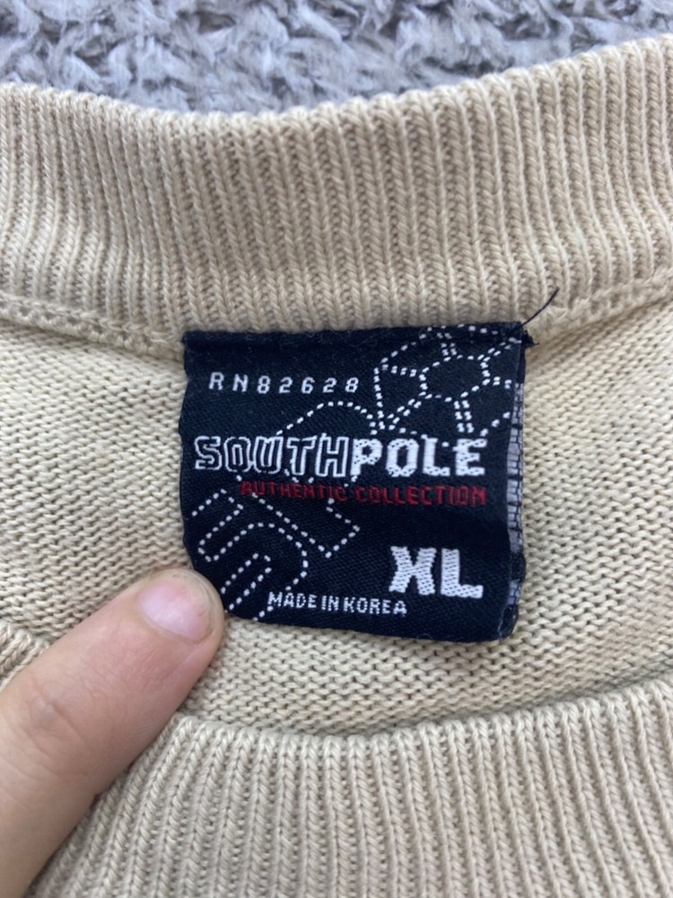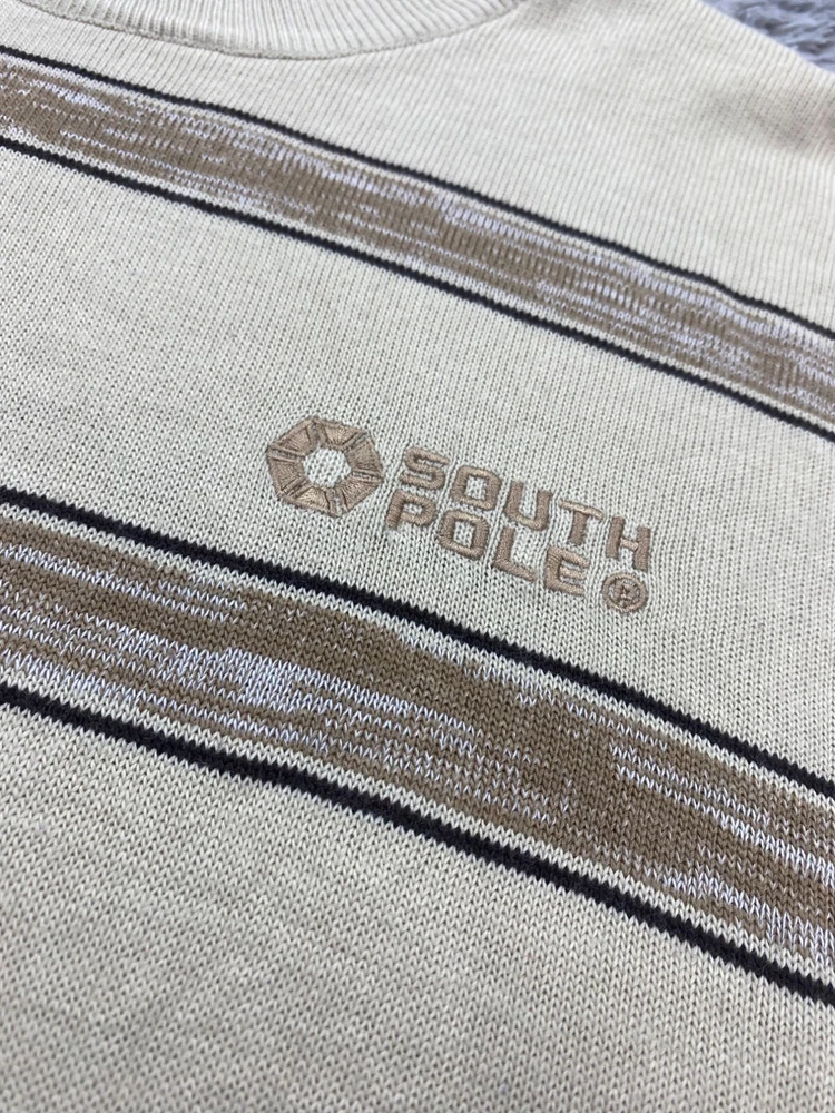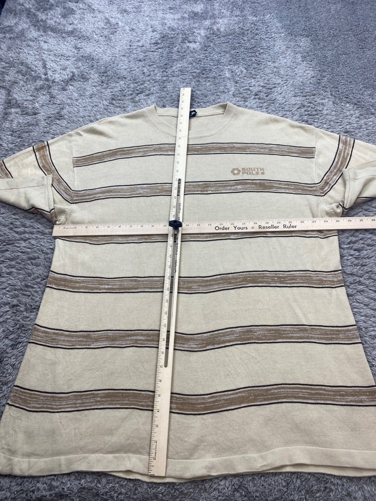 Size: XL Type: Sweater Garment Care: Machine Washable Knit Style: Tight-Knit Fabric Type: Knit Brand: Southpole Material: Acrylic Fit: Relaxed Style: Pullover Theme: 90s, Designer, Grunge, Hip Hop Occasion: Casual, Party/Cocktail, Travel Country of Origin: Korea, Republic of Vintage: Yes Department: Men Accents: Embroidered, Logo Features: All Seasons Color: Beige Size Type: Regular Pattern: Striped Neckline: Crew Neck Performance/Activity: Hiking, Skateboarding, Walking Sleeve Length: Short Sleeve