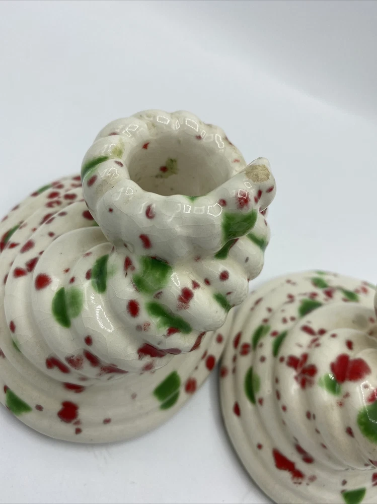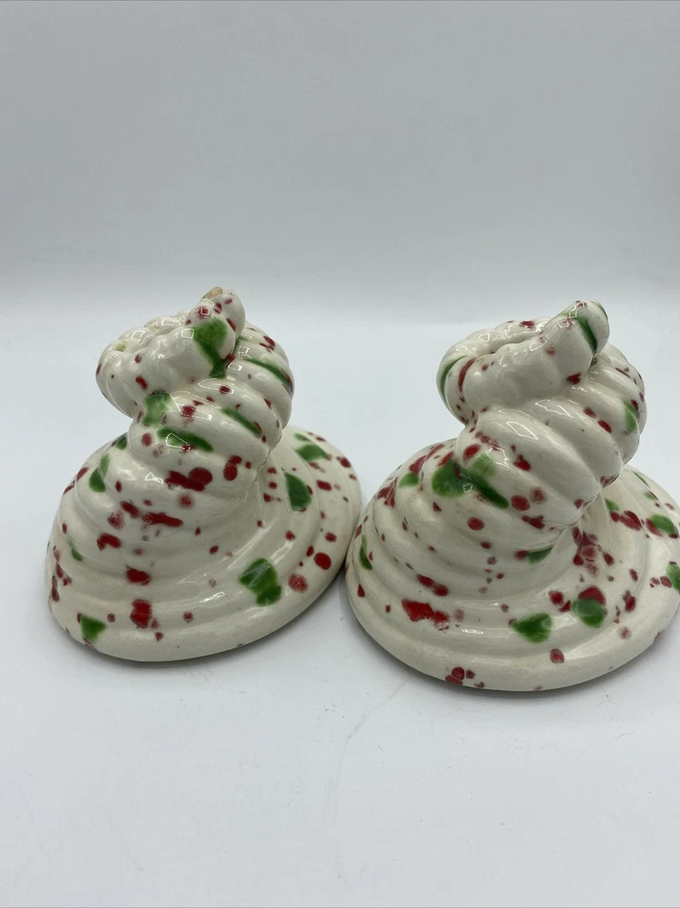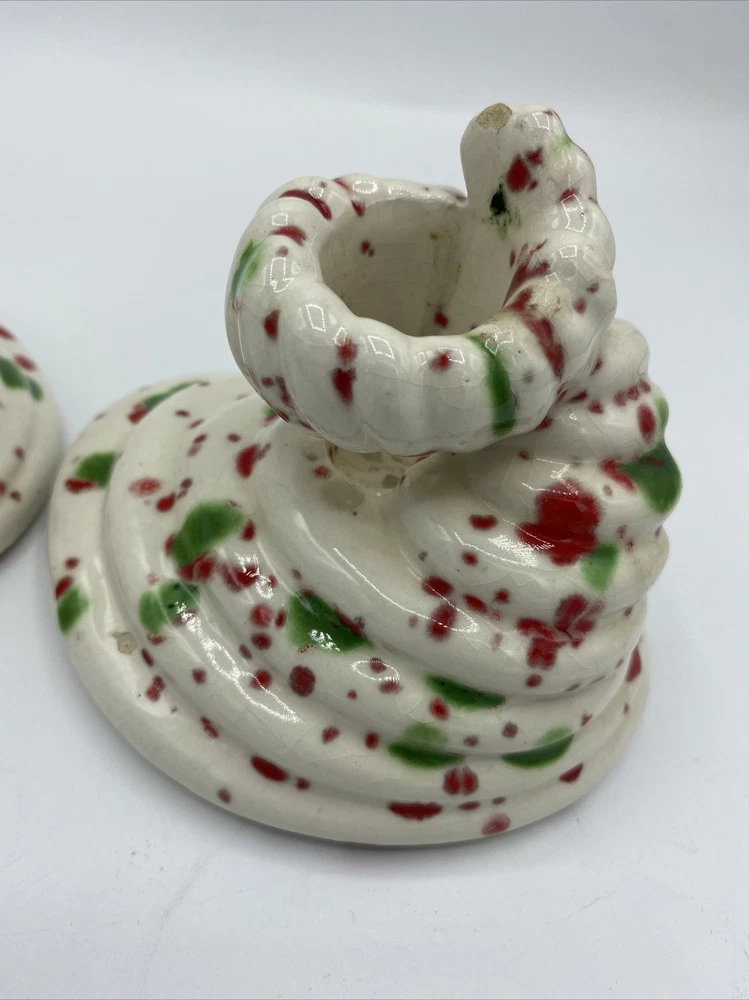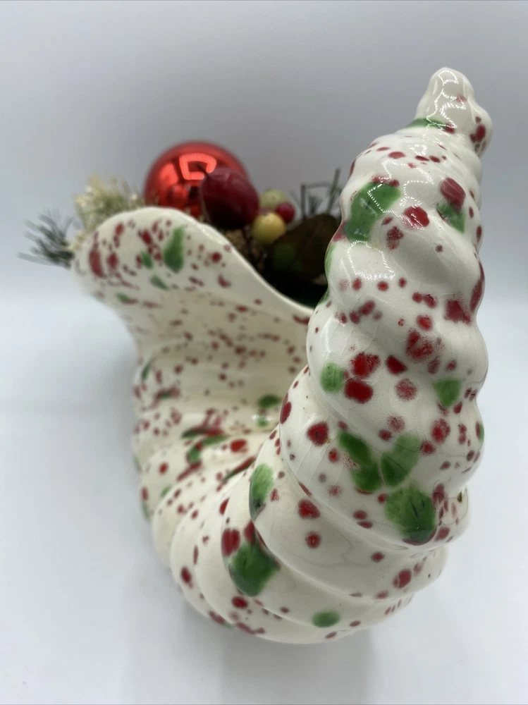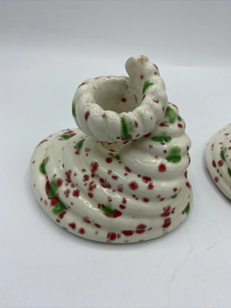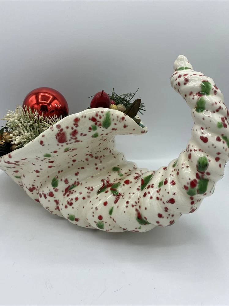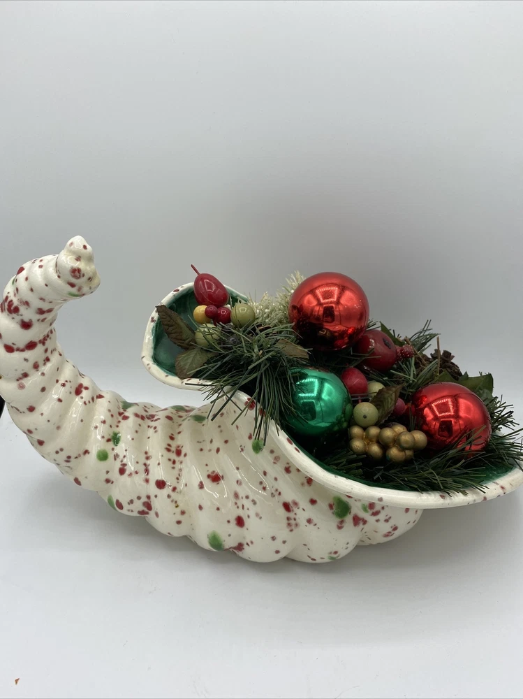 Vtg Speckle Ceramic Cornucopia Centerpiece candle holders Christmas Ornaments