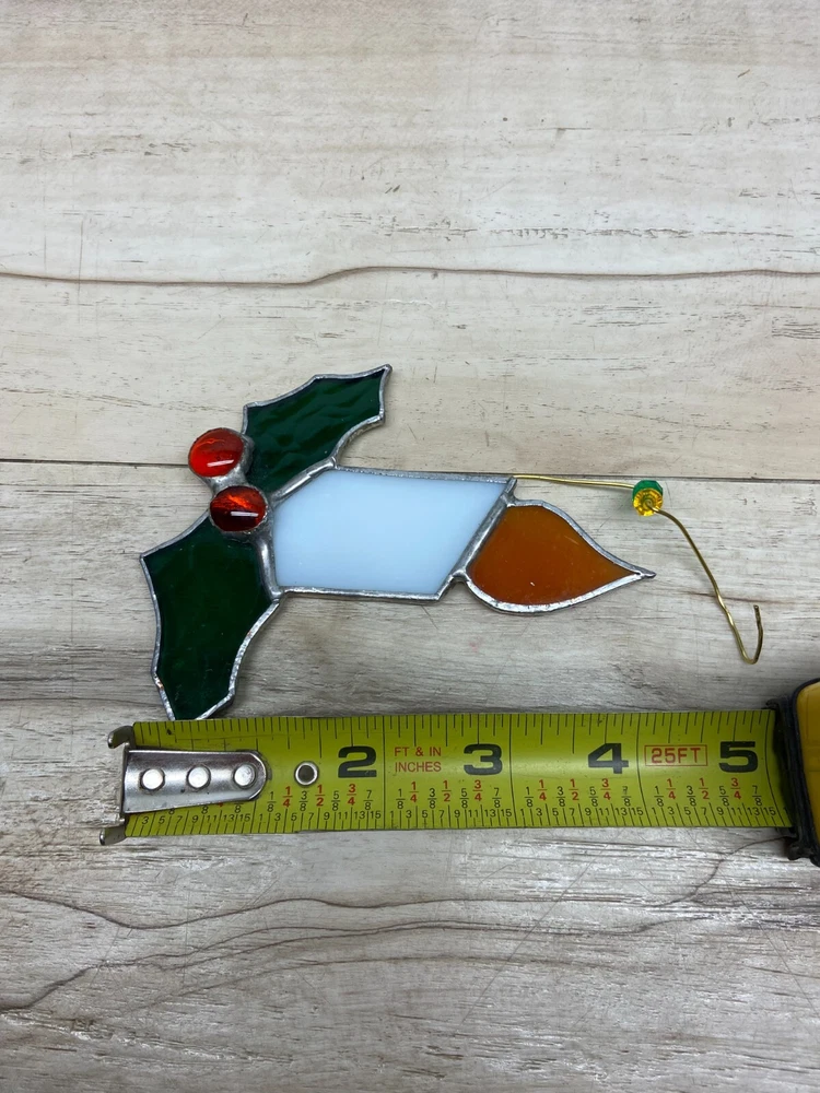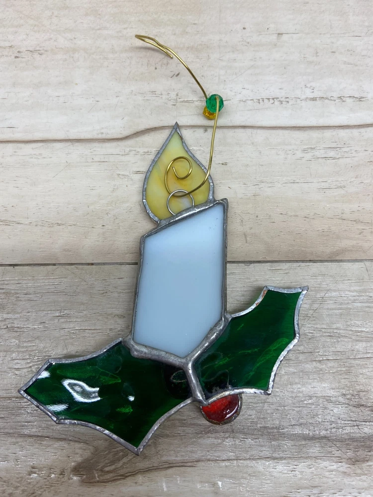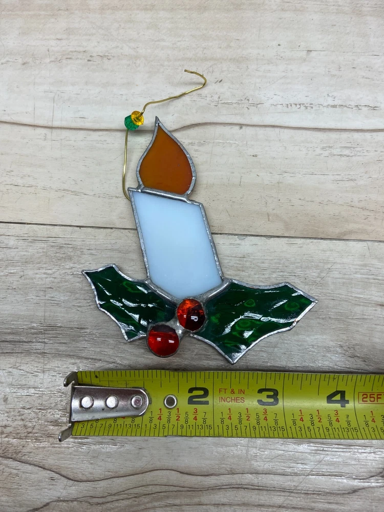 Vtg Stained Glass Holly Berry Candle Christmas Ornament.Very good condition,no cracks,no chips. WE OFFER COMBINED SHIPPING AND MULTI-ITEM PURCHASE DISCOUNTS.IF YOU HAVE ANY QUESTIONS PLEASE LET US KNOW