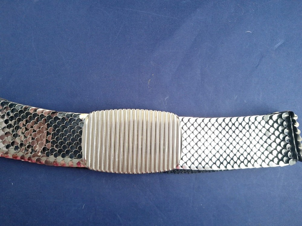 Vtg Stretch Belt Red Flame Leaf Hip Hop 80's Waist Buckle Boho *7FB