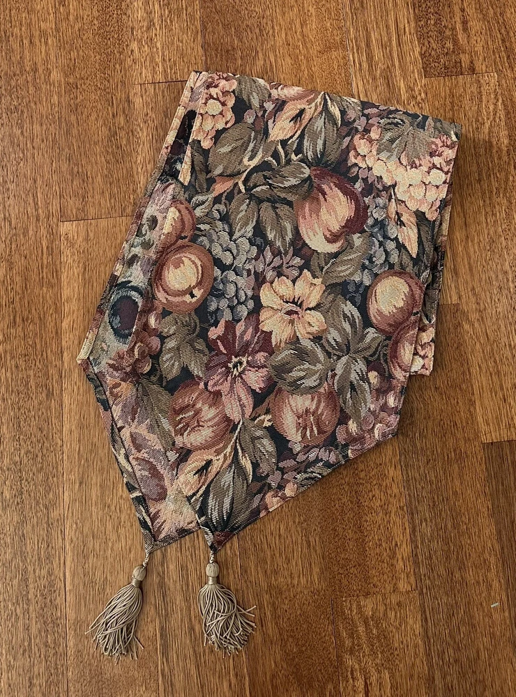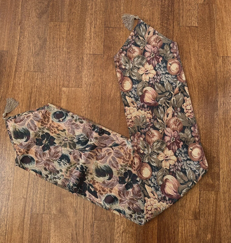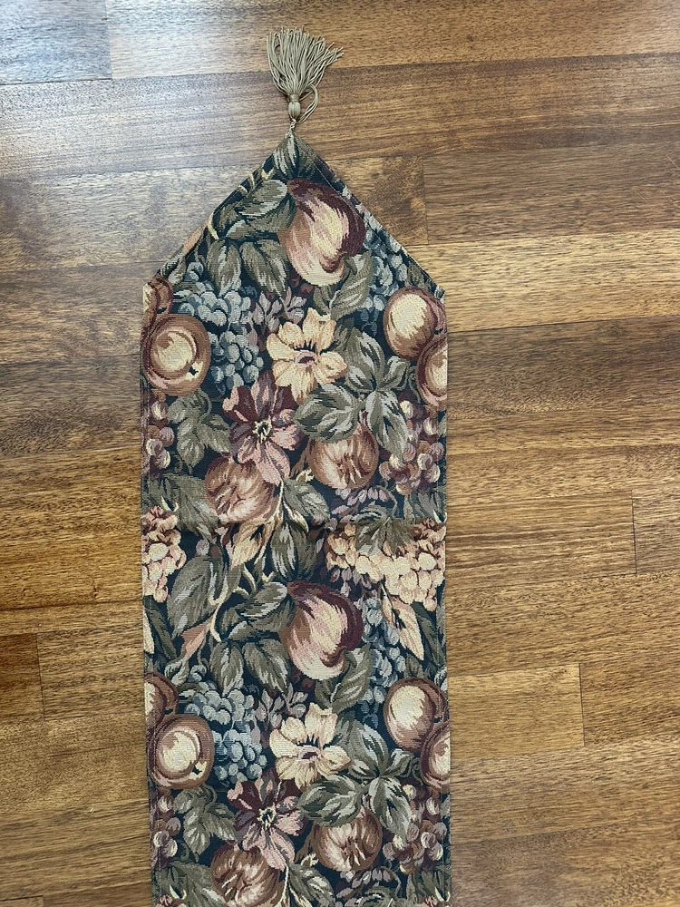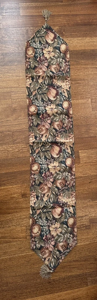 Vtg Tapestry Harvest Vegetables & Fruits Table Runner Tassels Woven 70" x 12" Perfect condition no issues Smoke free pet free home