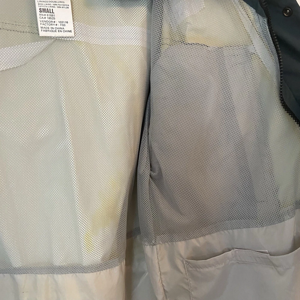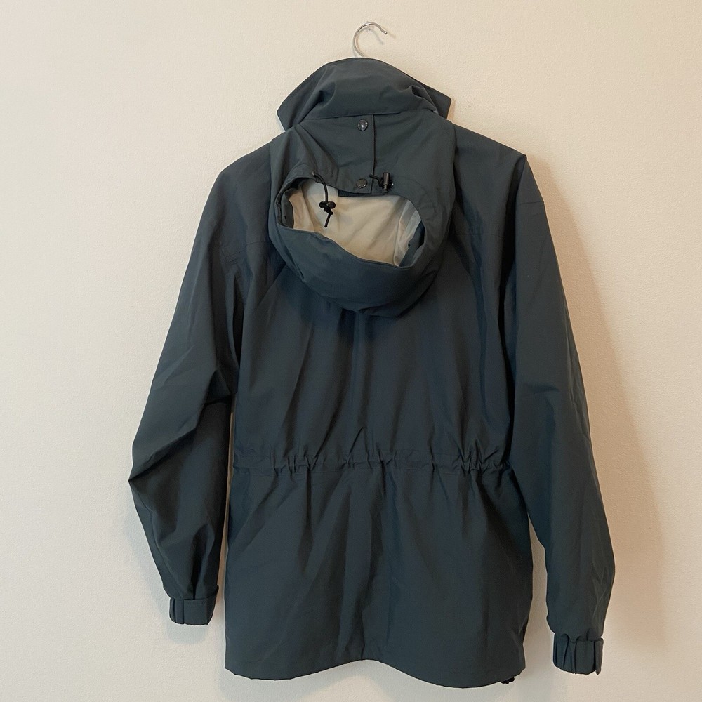 Vtg The North Face Rain Jacket Small Approx 21” pit to pit Approx 30” shoulder to hem Dark Green Gortex Parka with Hood, Full Zip, Button Front, cinch waist, zip pockets, hook and loop wrist closure Preowned Condition: exterior is clean with no known flaws, interior has some yellowing to lining due to aging. Also the vinyl strip covering the interior thread seams has started to come off (see photos) but the structural integrity of the jacket is intact. Ships from smoke and pet free environment