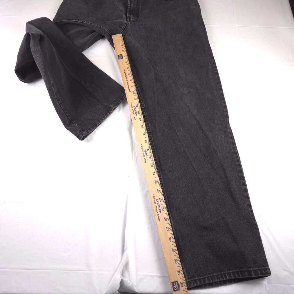 Tagged size 34x34 measures more like 34x32 see photos for measurements to determine proper fit before buying. Thanks. Light fading. Slight baggy loose fit.