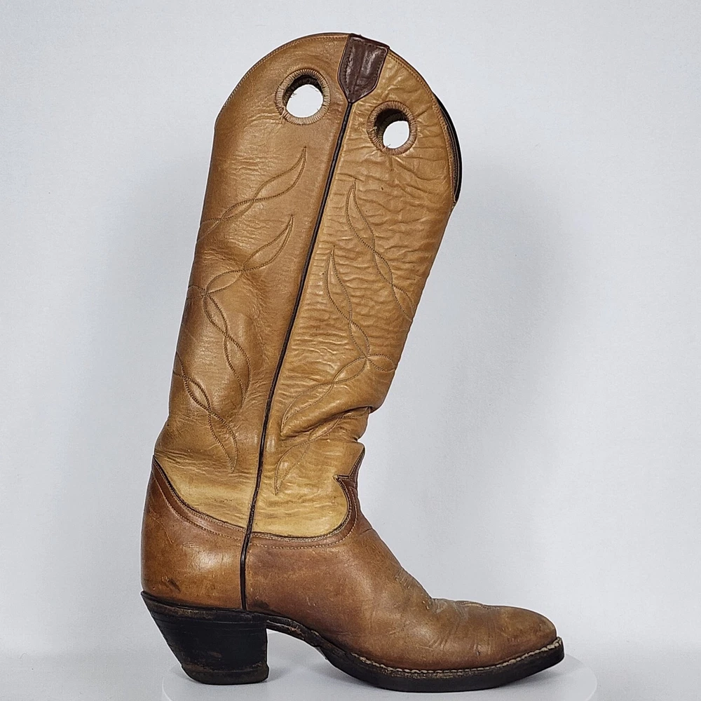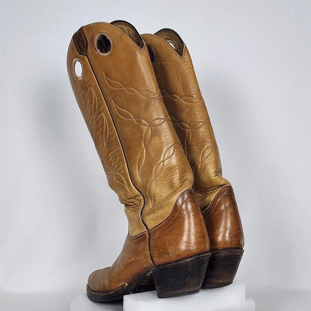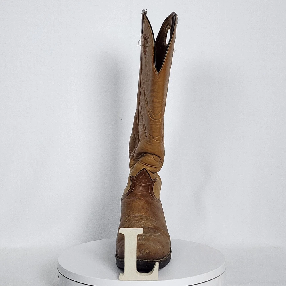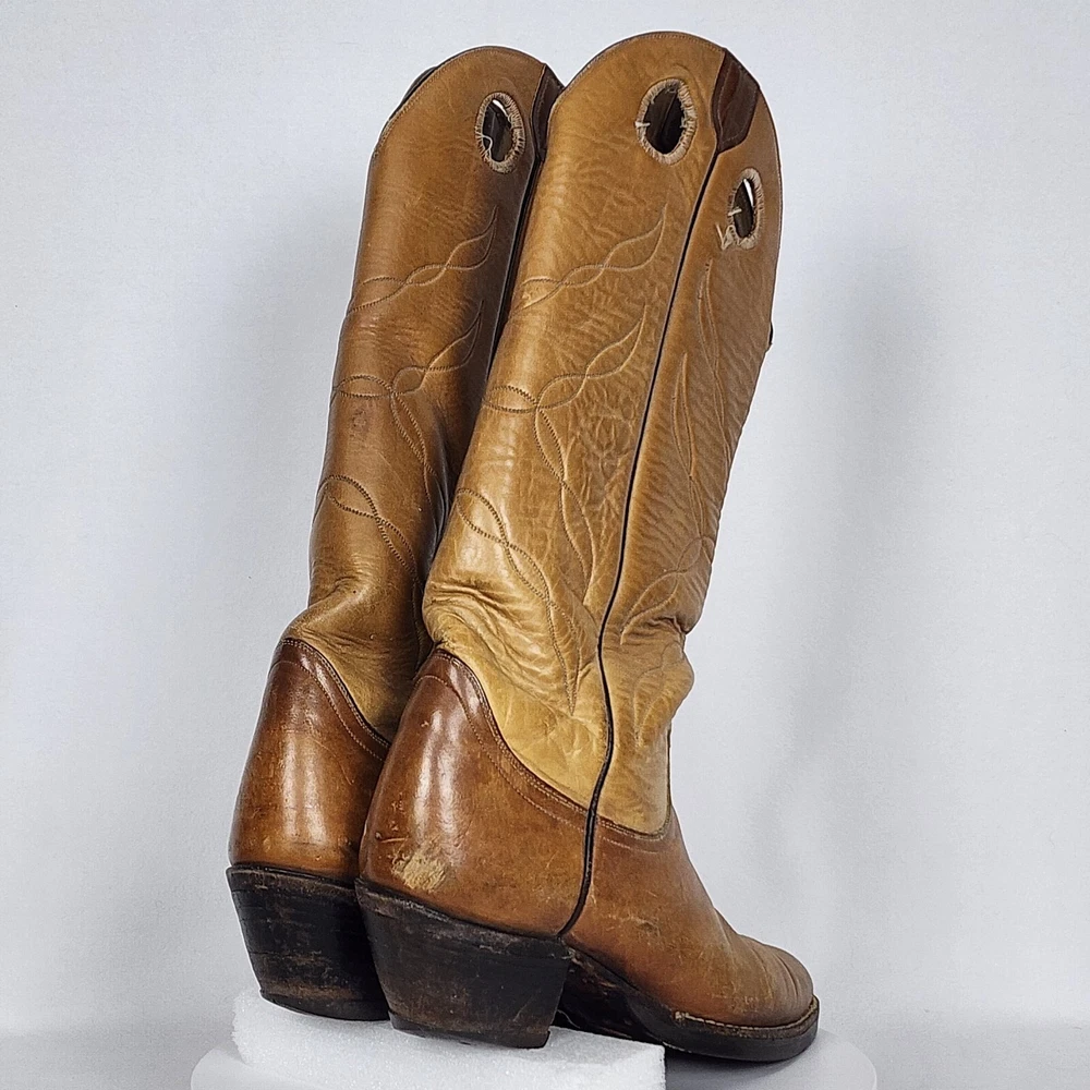 Vtg Tony Lama Knee High Buckaroo Heel Boots w/Almond Toe Shape Style #5089 Men's 9.5R - See Scuffs; Pre-owned (Item #2909 -B8/17)