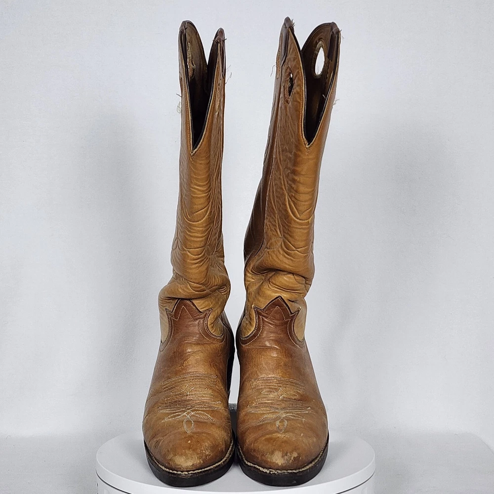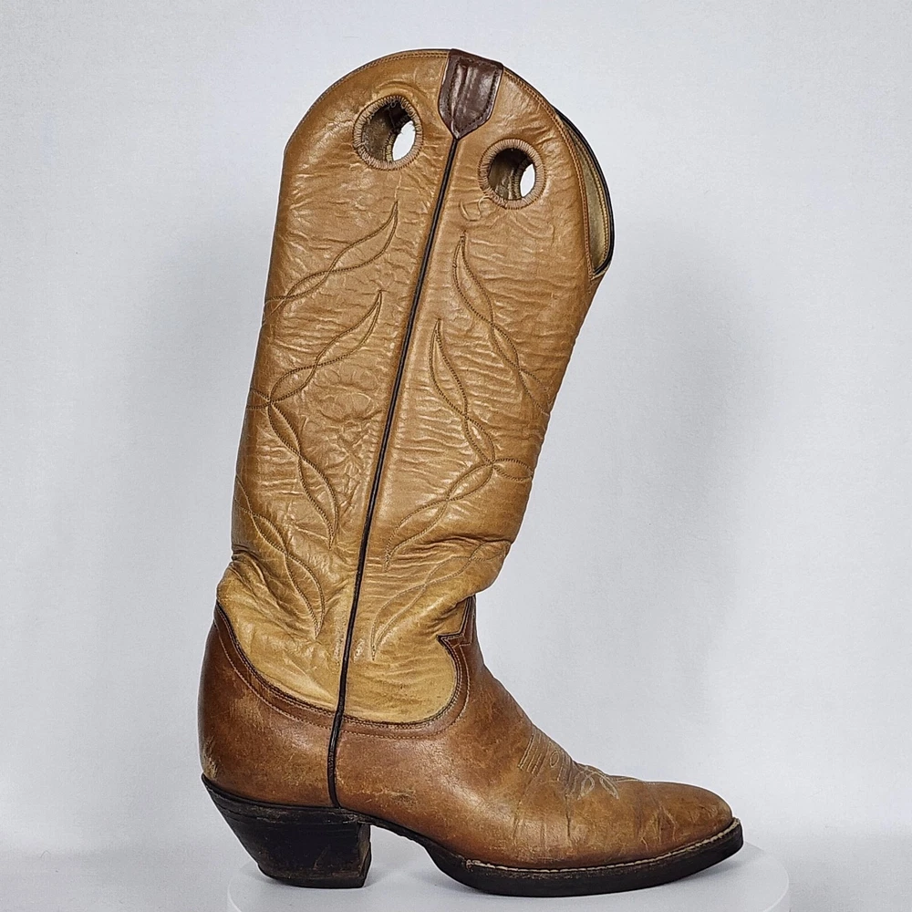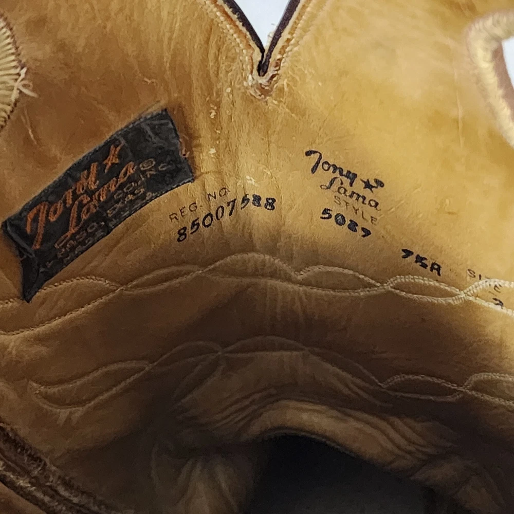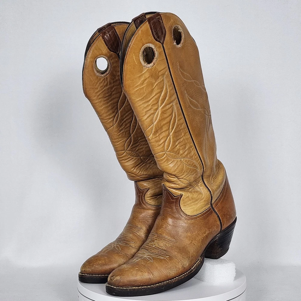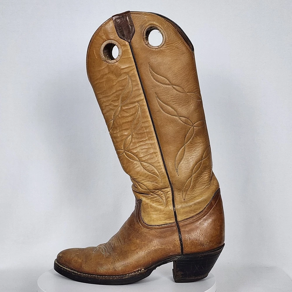 Vtg Tony Lama Knee High Buckaroo Heel Boots w/Almond Toe Shape Style #5089 Men's 9.5R - See Scuffs; Pre-owned (Item #2909 -B8/17)