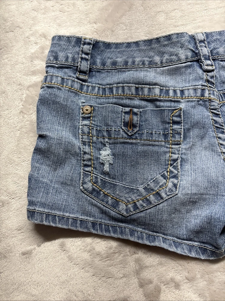 Driftwood Goldie Embroidered Denim Shorts Size 33 Frayed Hem Bird Boho Festival
