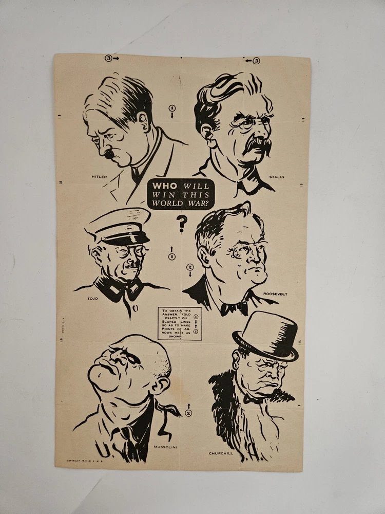 Vtg WW2 Comic Illustration Who Will Win This World War