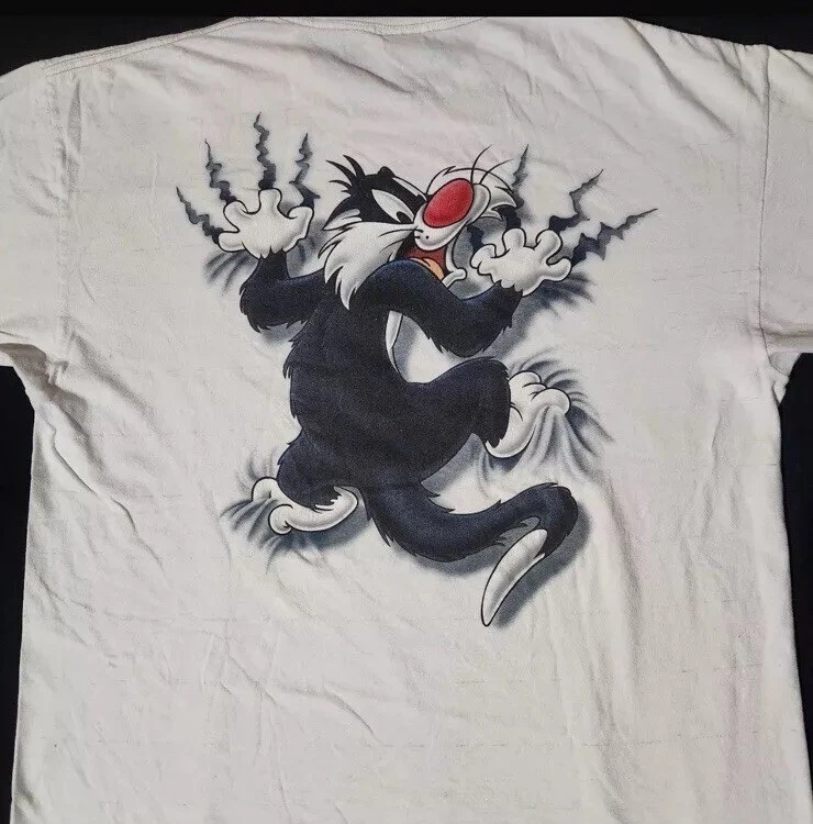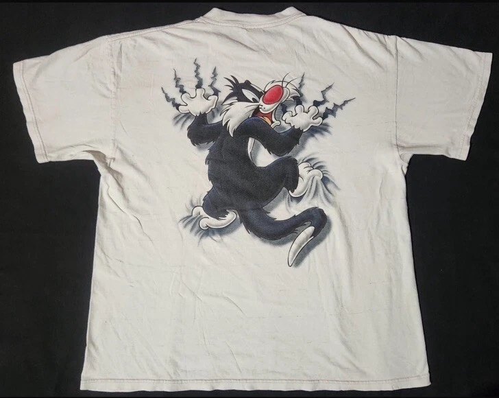 Vtg Warner Bros Looney Tunes Sylvester Big Graphic T Shirt XL double sided