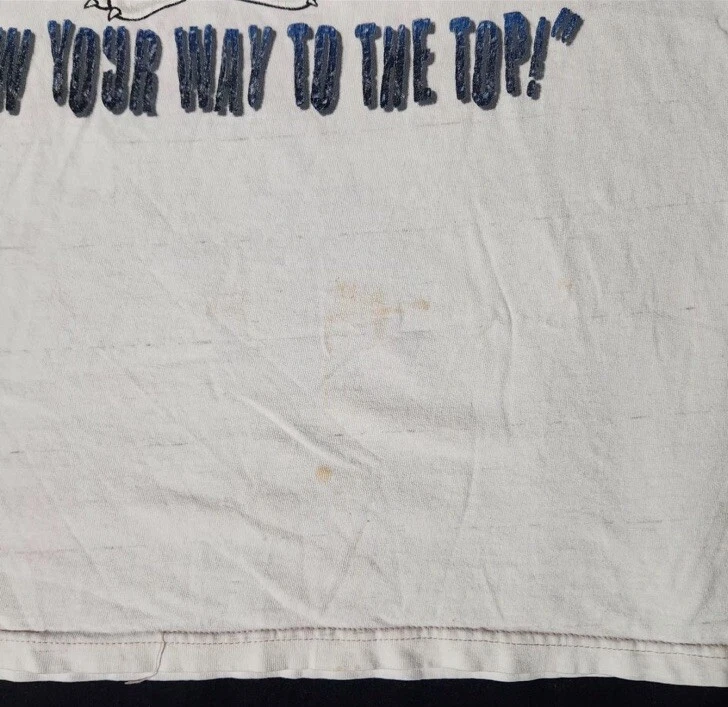 This vintage t-shirt from Warner Bros features the iconic character Sylvester from the Looney Tunes series, with a big graphic logo accent. Made in the United States by Anvil, this t-shirt is made of 100% cotton and has a crew neckline with short sleeves. The size is XL, and it has a regular fit that is perfect for men who love the 90s era. The shirt is in great condition and has been well-preserved throughout the years. Its solid pattern and white color make it a versatile piece that can be paired with any casual outfit. Whether you're a fan of Sylvester or just looking for a stylish and comfortable t-shirt, this vintage item is a must-have for any Looney Tunes enthusiast.