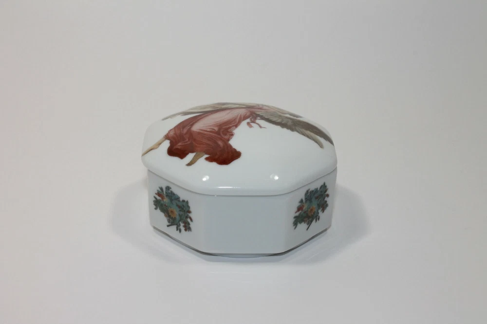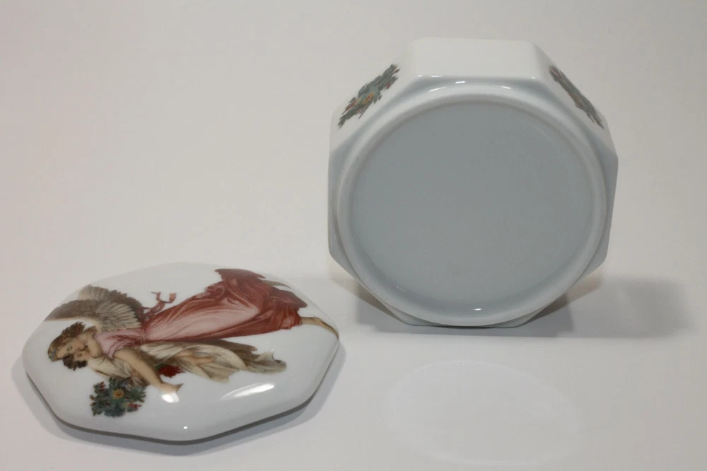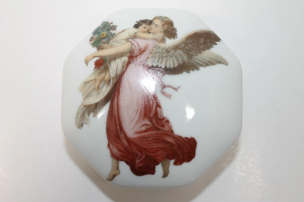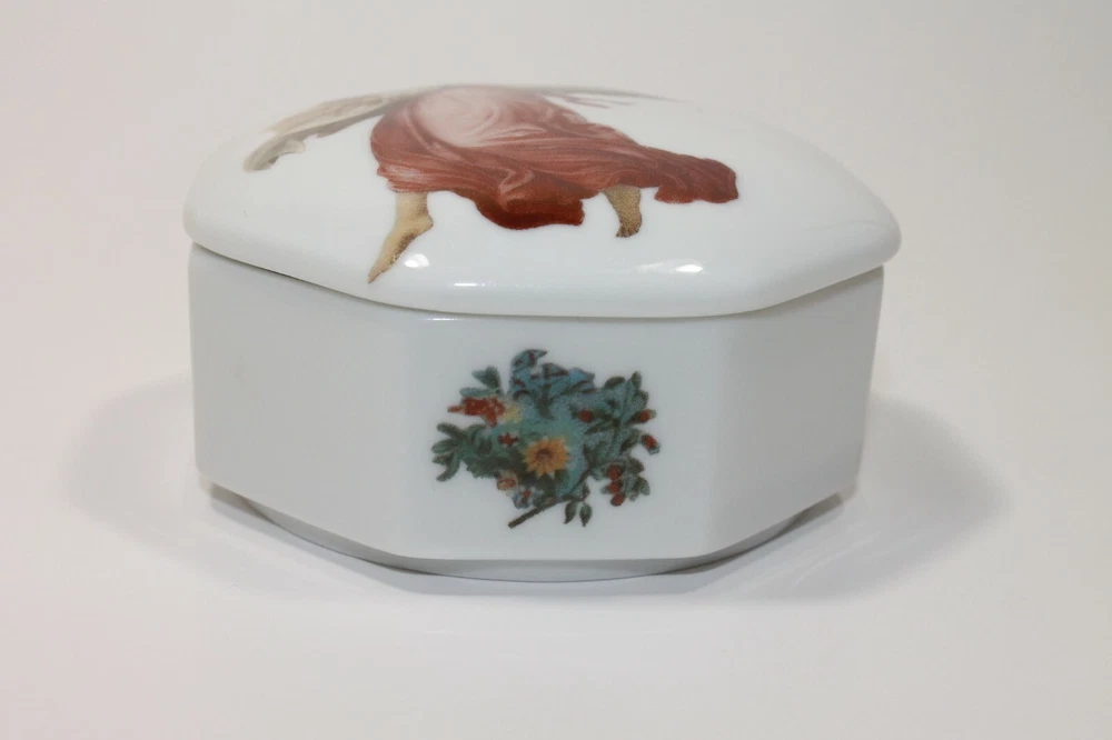 Type: Jewelry Box Brand: Unbranded Vintage: Yes Material: Porcelain Item Length: 3.25 in Theme: Angel Color: Multicolor Item Depth: 1.25 Item Width: 3.25 in Customized: No Lining Material: Unlined Personalize: No Country/Region of Manufacture: Unknown Shape: Octagon Handmade: No Suitable For: Jewelry
