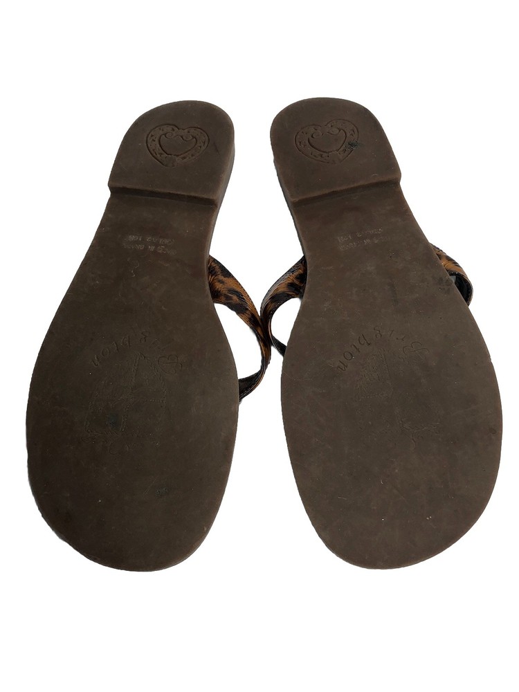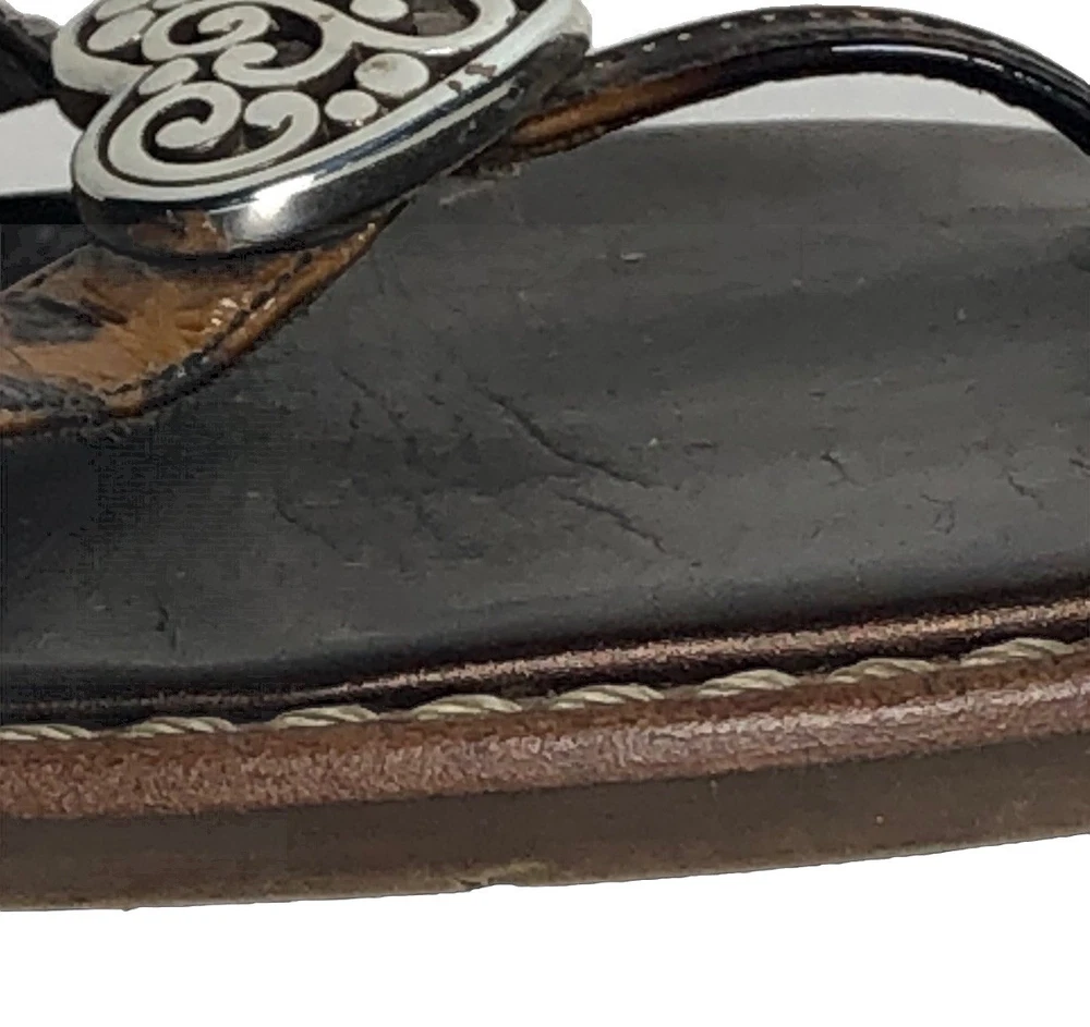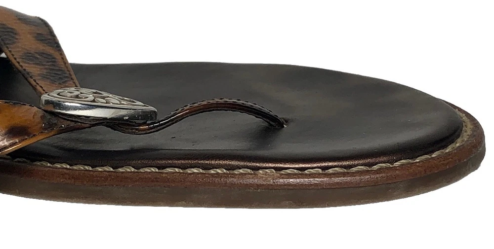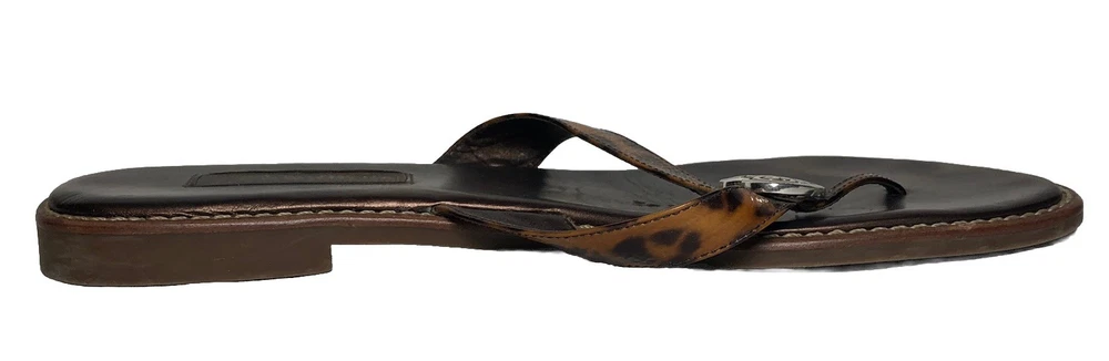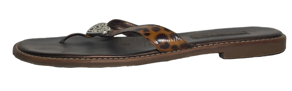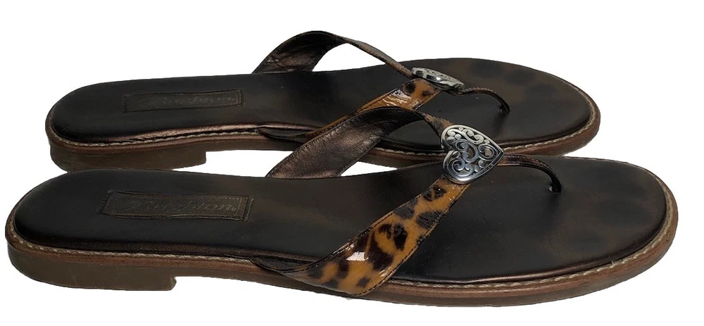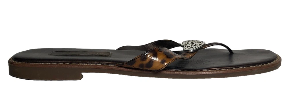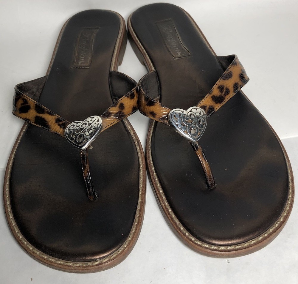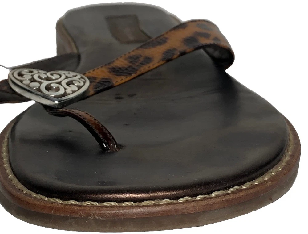 Vtg Y2K Brighton Orla 2 Flip Flop Sandals Leopard Print Heart Shoes Brazil 10M