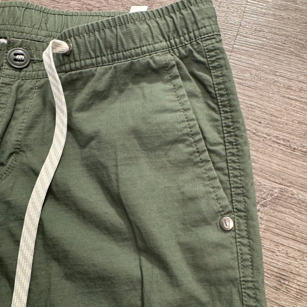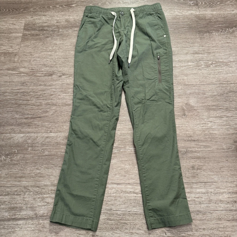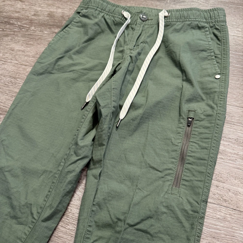 Front Type: Flat Front Material: Cotton, Cotton Blend, Spandex Vintage: No Type: Pants Accents: Logo Features: Comfort, Easy Care, Elastic Waist, Pockets, Stretch Model: Vuori Ripstop Pant Closure: Drawstring Rise: Mid (8.5-10.5 in) Pattern: Solid Department: Women Waist Size: 26 in Garment Care: Machine Washable Theme: Army, Logo, Nature, Sports Occasion: Casual, Travel, Workwear Size: XS Color: Green Brand: Vuori Leg Style: Tapered Size Type: Regular Season: Fall, Spring, Summer, Winter Fit: Regular Fabric Type: Canvas Inseam: 28 in Style: Cargo
