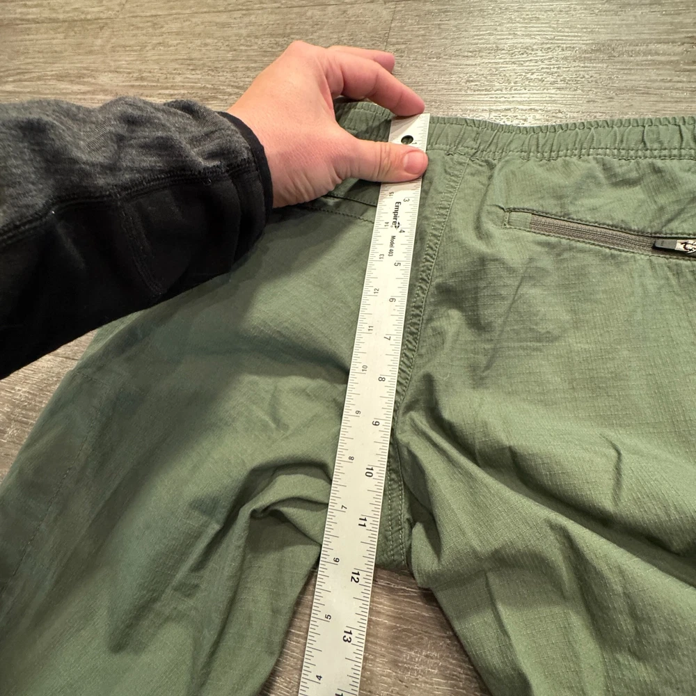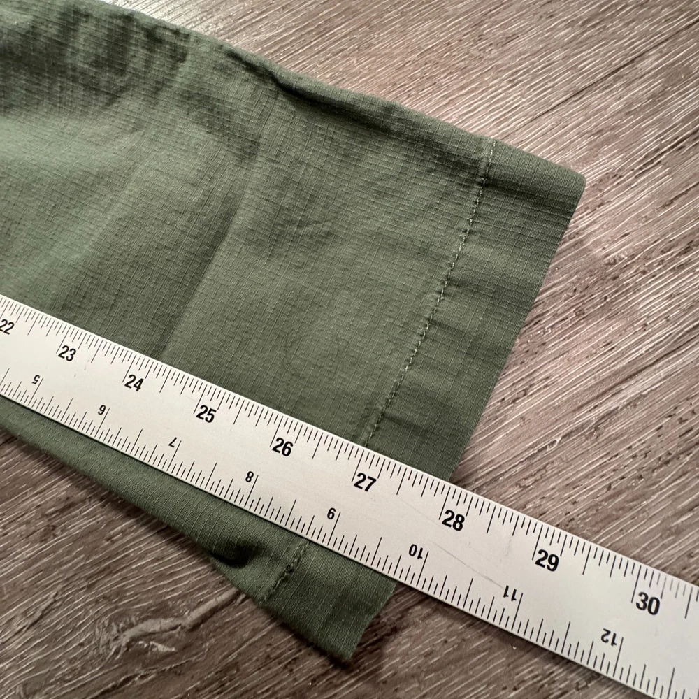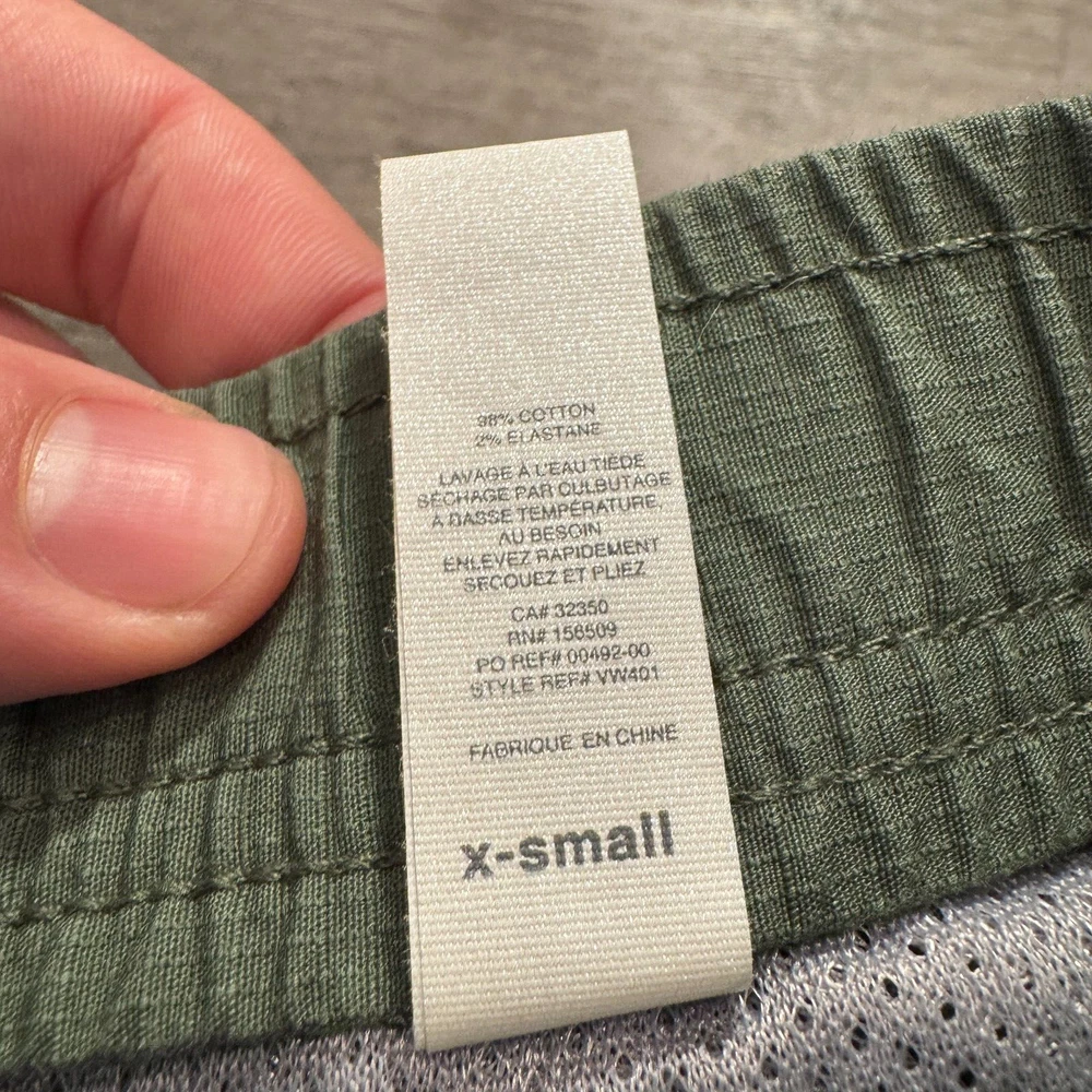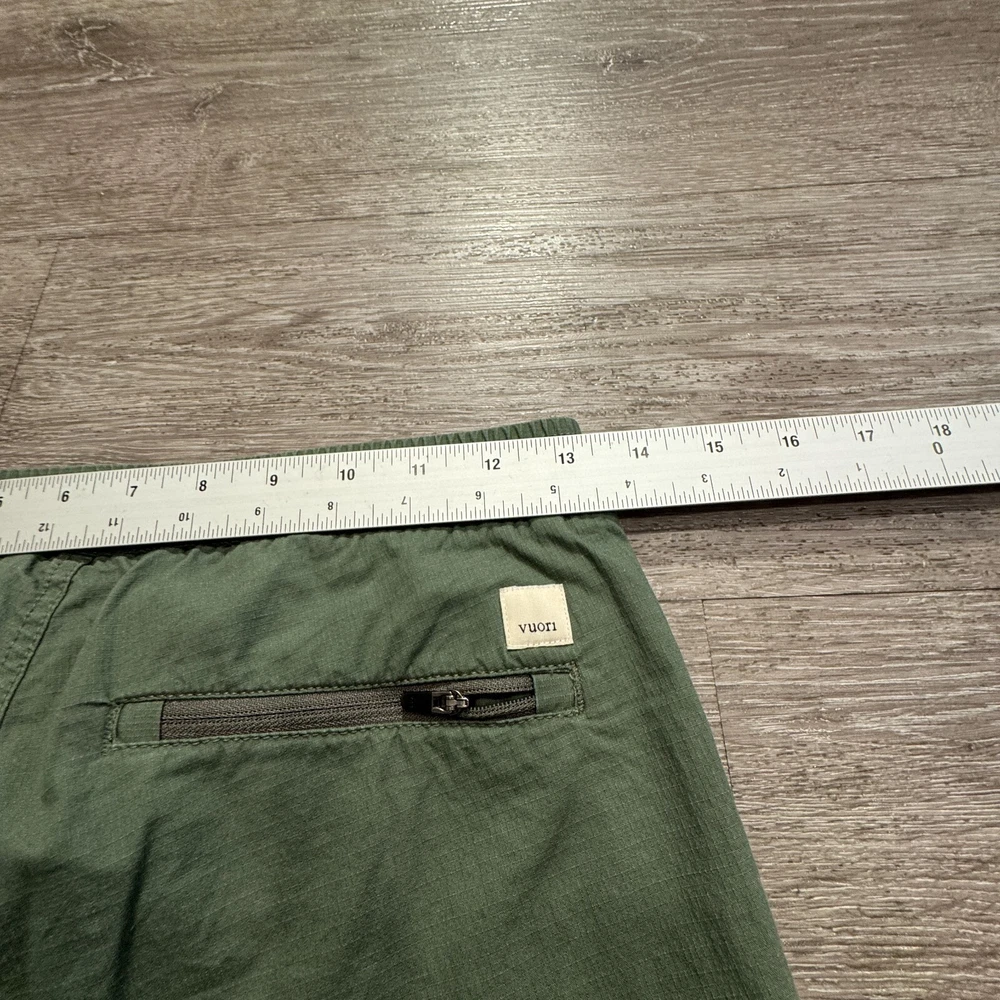 Front Type: Flat Front Material: Cotton, Cotton Blend, Spandex Vintage: No Type: Pants Accents: Logo Features: Comfort, Easy Care, Elastic Waist, Pockets, Stretch Model: Vuori Ripstop Pant Closure: Drawstring Rise: Mid (8.5-10.5 in) Pattern: Solid Department: Women Waist Size: 26 in Garment Care: Machine Washable Theme: Army, Logo, Nature, Sports Occasion: Casual, Travel, Workwear Size: XS Color: Green Brand: Vuori Leg Style: Tapered Size Type: Regular Season: Fall, Spring, Summer, Winter Fit: Regular Fabric Type: Canvas Inseam: 28 in Style: Cargo