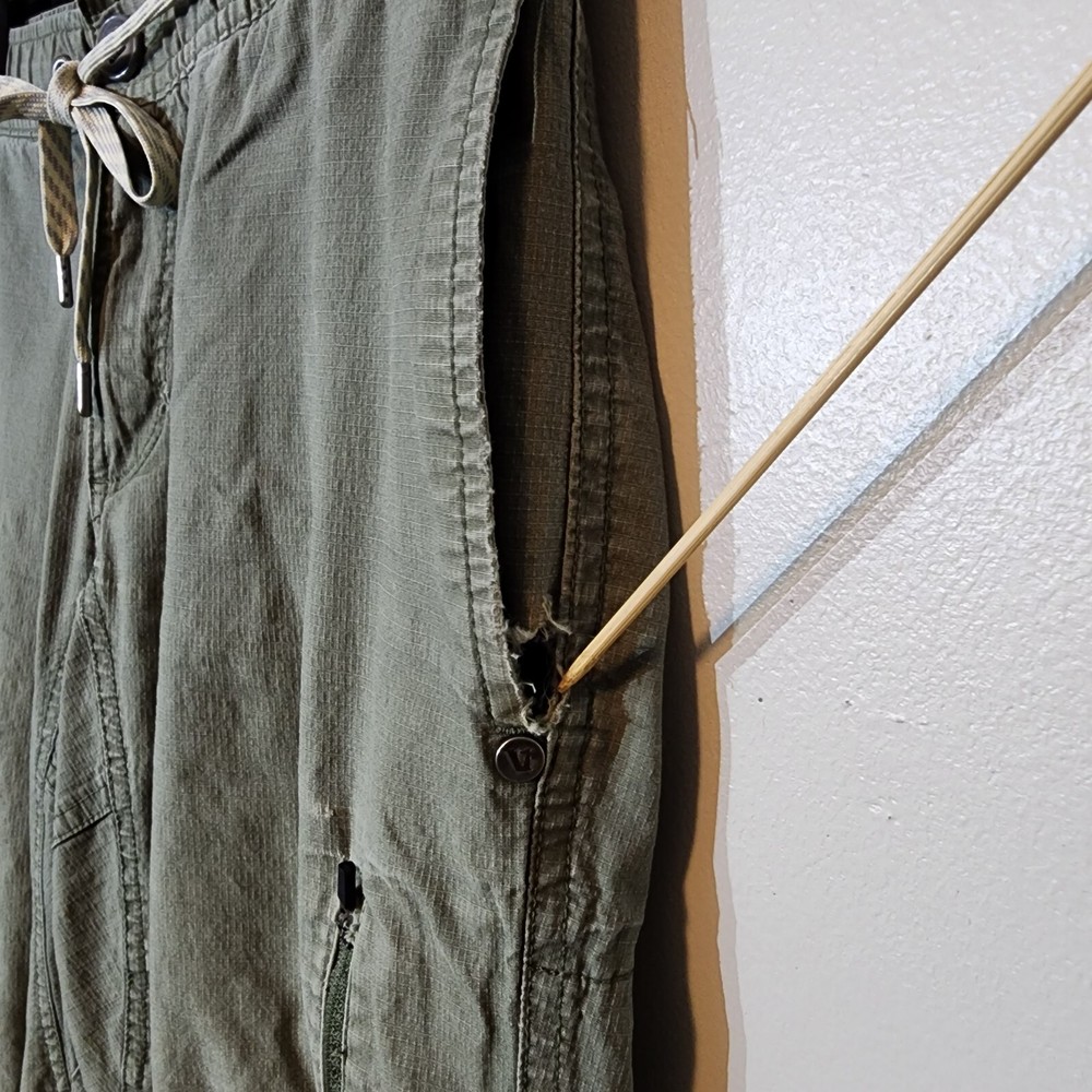 These Vuori joggers are super comfy and stylish—perfect for casual wear or workouts! The ripstop fabric is durable, and the tapered fit looks sharp. There are some small holes in the pockets (shown in pics), but they don’t affect the overall quality. Great find for the price!
