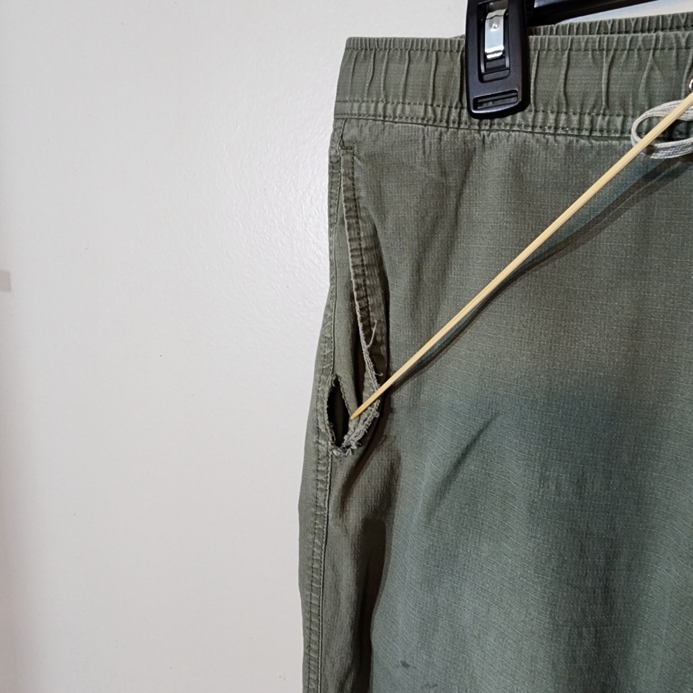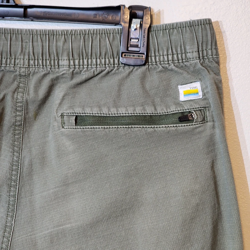 Vuori Jogger Pant Size Medium Green The Rise The Shine Ripstop Tapered (Read) This item is pre-owned with signs of wear. Pictures 2 and 3 holes at the pockets.