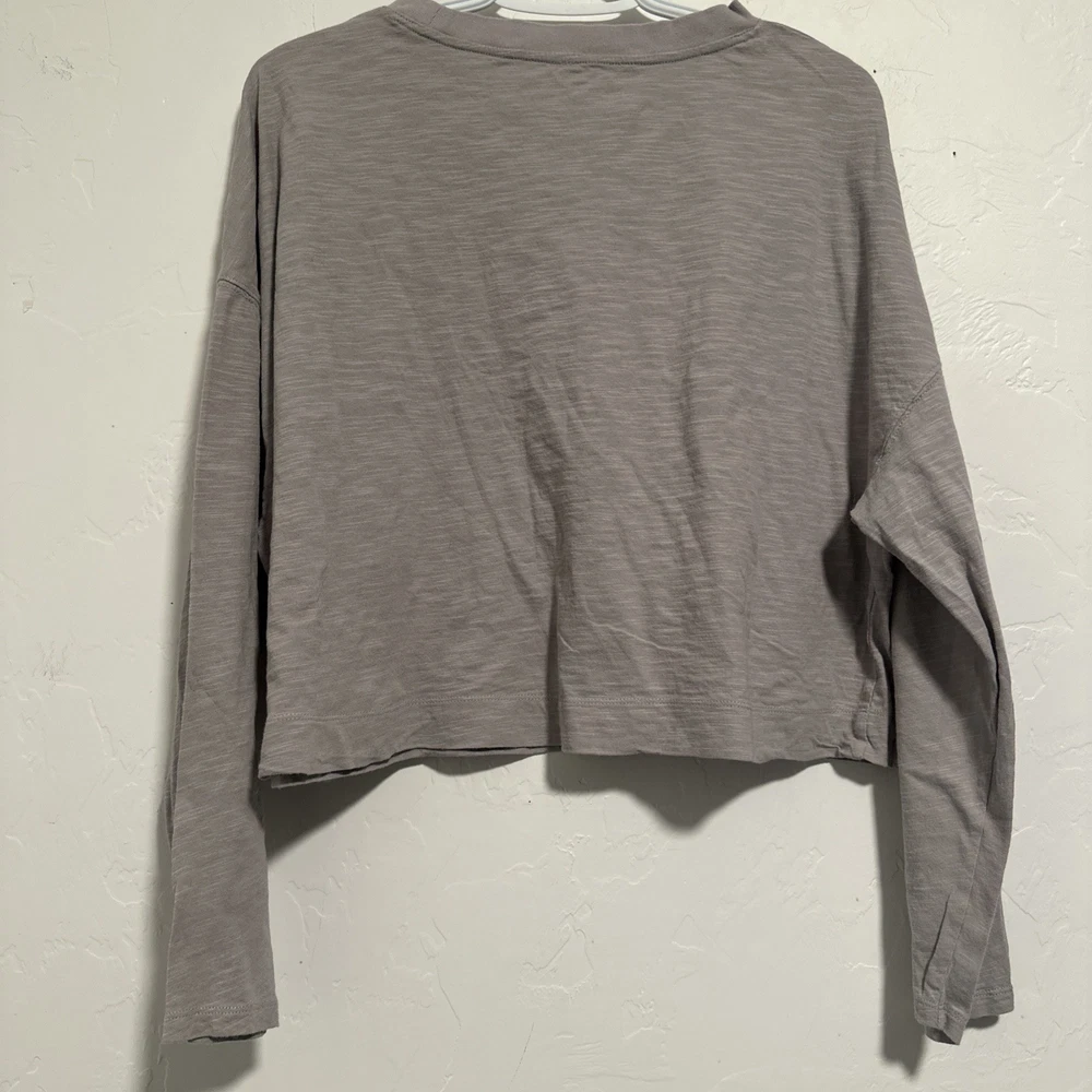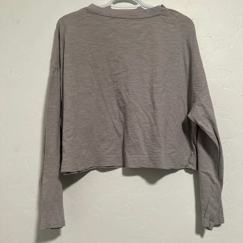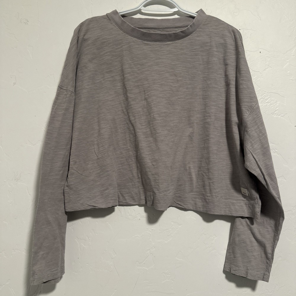 The Vuori Woman Crew Neck Long Sleeve Cropped Top in Light Gray, Size Large, is a versatile activewear piece perfect for various activities like gym training, yoga, and running. Made from a comfortable cotton blend fabric with a light wash, this top offers a relaxed fit and features like lightweight feel, stretch, and breathability. The crew neck and pullover closure make it easy to wear, while the cropped style adds a trendy touch to the solid gray color. With its performance-driven design and super soft material, this Vuori top is a stylish and functional addition to any woman's activewear collection.
