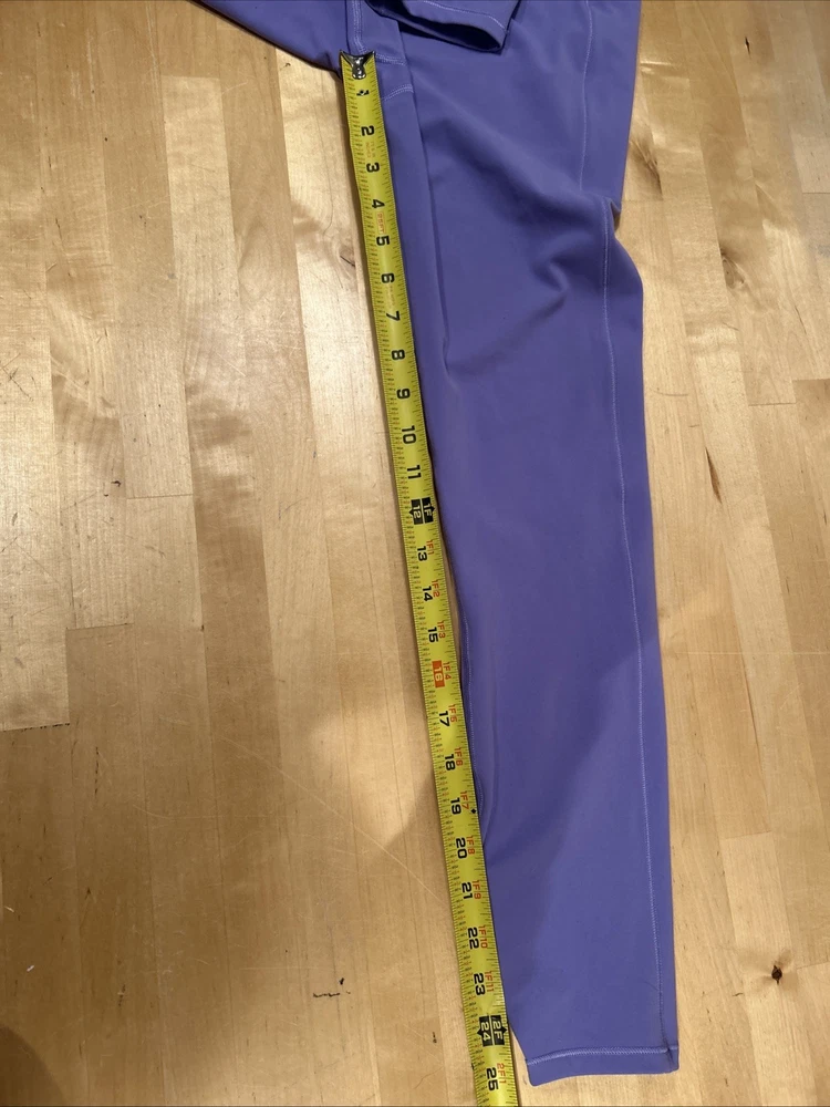 Rise: High (Greater than 10.5 in) Color: Purple Department: Women Performance/Activity: Yoga, Weightlifting, Walking, Track & Field, School, Running & Jogging, Pilates, Hiking, Gym & Training, Dance, Cycling, CrossFit, Cross Training Size: M Type: Leggings Size Type: Regular Style: Ankle Features: Adjustable Waist, Comfort, Compression, Elastic Waist, Lightweight, Pockets, Ribbed, Shaping, Slimming, Zip Pocket Material: Polyester Seller Notes: “Excellent Pre-owned. See photos for condition details and measurements.” Character: Violet Occasion: Activewear, Casual Brand: Vuori