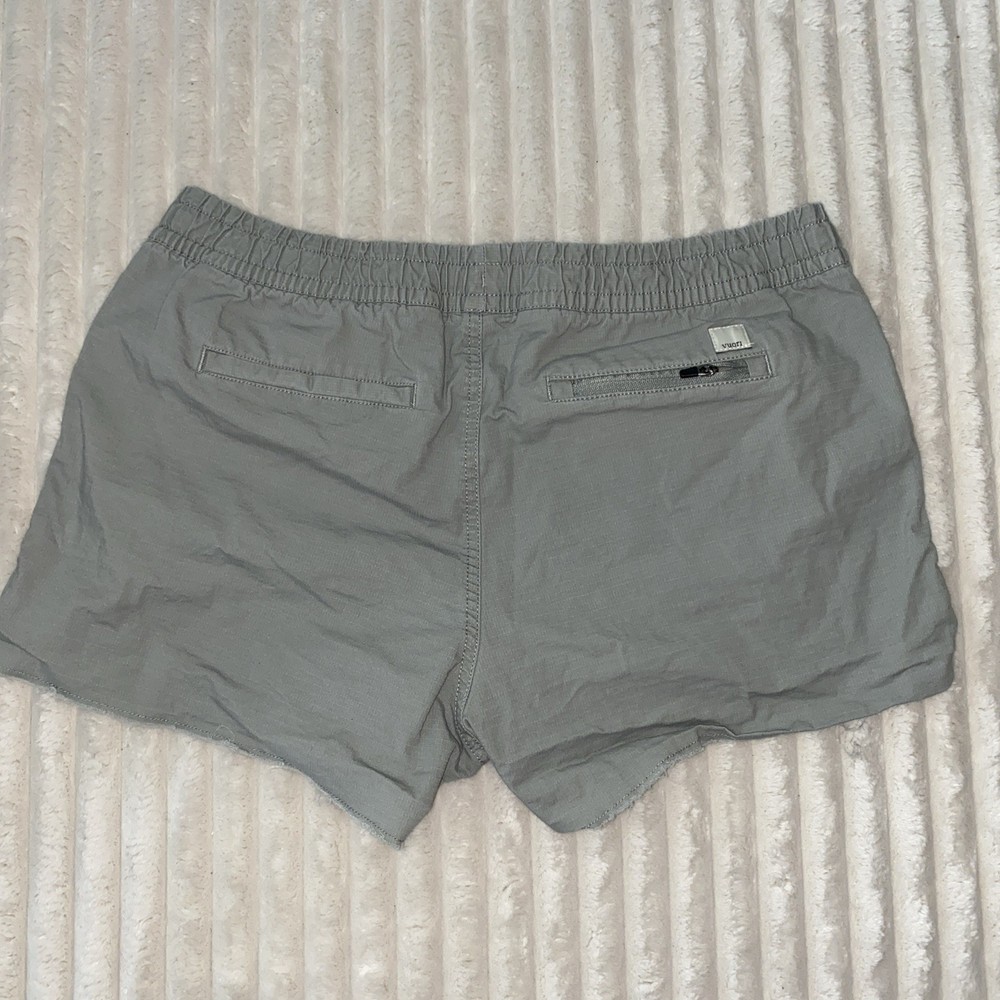 The Vuori Women's M Gray Vintage Ripstop Shorts are versatile outdoor shorts perfect for travel, casual wear, or activewear. With a drawstring closure and stretch material, they provide a comfortable fit for various activities such as hiking, running, or walking. The 3-inch inseam and solid gray color make them a stylish and practical choice for all seasons. The lightweight fabric and breathable design ensure ease of movement and comfort during outdoor adventures. Made by Vuori, these shorts combine quality construction with functional features for the modern woman on the go.