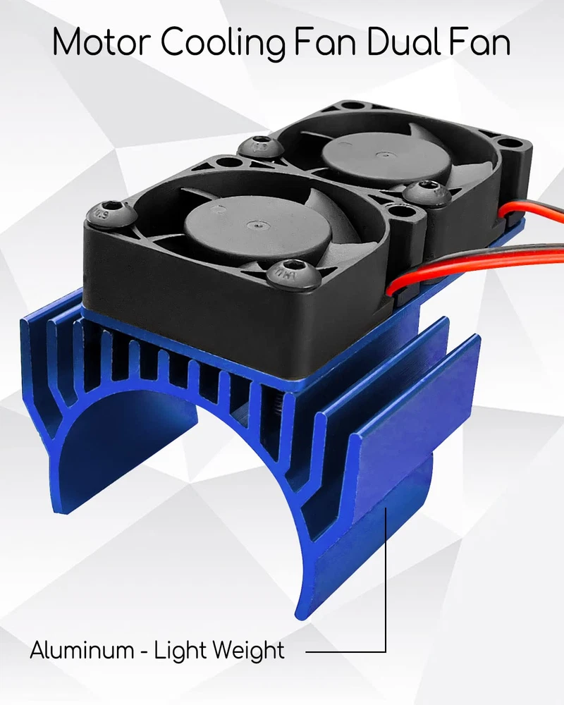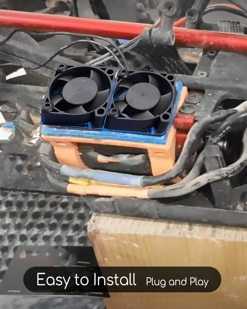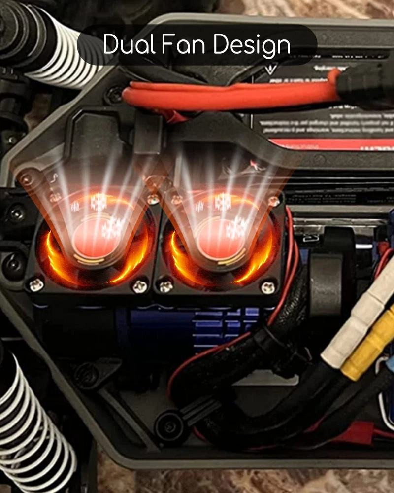 Compatible Models: This ESC cooling fan and motor cooling fan dual fan set compatible with Traxxas Slash 4x4 VXL compatible with Stampede 4x4 VXL compatible with Rustler 4x4 VXL compatible with Hoss 4×4 VXL compatible with Velineon VXL 3s heat sink High Quality Raw Materials: Our VXL-3s ESC cooling fan and motor dual fan set are made of high-quality aluminum alloy materials and hard plastic, high strength, light weight, durable, high temperature resistance, faster heat dissipation, easy to install and disassemble, corrosion preventive, easy to clean and maintain, raw materials are easy to shape, so the product is molded The size is more accurate when molding, so that the design can be perfectly displayed Excellent Performance: This ESC cooling fan and motor cooling fan dual fan set can cool the motor to the maximum extent, reducing the temperature during ESC continuous operation to ensure efficient operation of the motor, the waterproof grade of this fan pack is IP44, so daily splashing will not affect it Easy to Install: Connect the fan pack directly to the radiator, and use it to cool the motor, making it easy to install and plug and play What You Get: 1 x ESC cooling fan, 1 x motor cooling fan, 2 x power cords, if you encounter problems during product installation and use, please contact our technical team in time, and our technical team will reply to you within 12 hours This is a combination of ESC cooling fan and motor cooling fan, paired with your own radiator, to cool down your motor and ensure that the motor works at its best state Compatible Models: Compatible with Traxxas Slash 4x4 VXL Compatible with Stampede 4x4 VXL Compatible with Rustler 4x4 VXL Compatible with Hoss 4×4 VXL Compatible with Velineon VXL 3s Features: Material: high quality aluminum alloy and hard plastic Color: blue durable Lightweight High temperature resistance Faster heat dissipation Easy to clean and maintain Easy to install Plug and play Accurate size Input voltage: 5v Power plug: JST Waterproof grade: IP44 What You Get: 1 x ESC cooling fan 1 x motor cooling fan 2 x power cords Customer Service If you encounter problems during product installation and use Please contact our technical team in time Our technical team will reply to you within 12 hours