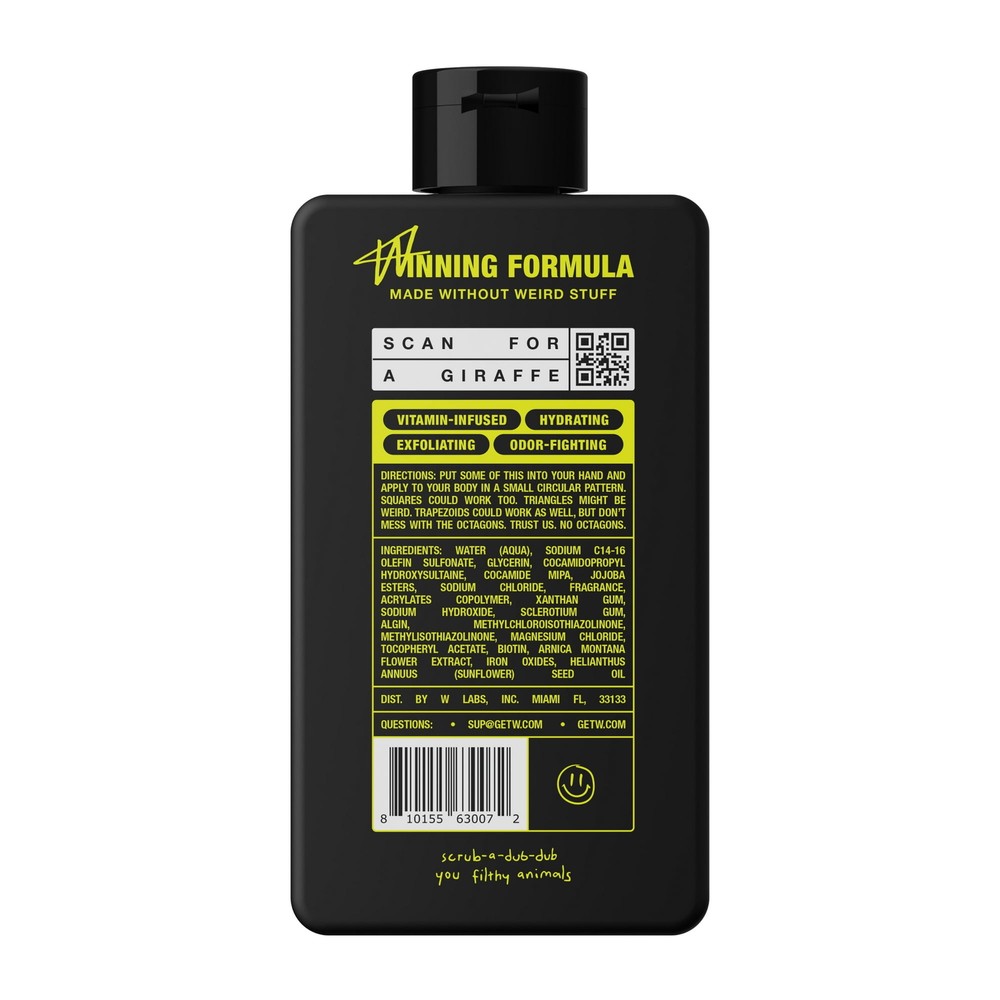 Product details W Exfoliating Body Wash smells so good you'll want to bathe in it. Luckily, that's exactly why we made it. Our Deep Woods scent was inspired by the deep woods. Not the shallow woods. The really deep part of the woods where it's mainly just trees and they read poetry. W's exfoliating scrub cleans deep and leaves you feeling fresh and smooth. Our body wash is infused with Vitamin E and Biotin to promote healthy hydrated skin. And we did it all without parabens, harsh sulfates, or artificial colors– that's W's winning formula. W will have you clean and ready to take on the day. That is if you shower in the morning, of course. If you shower at night, well...it's like a reward. EXFOLIATING: Scrub-a-dub-dub for a deep clean HYDRATING: Jojoba oils– from the jojoba plant– help your skin retain moisture and improve your skin barrier function. ODOR FIGHTING: Long lasting scents that leave you smelling fresh all day, everyday. Your nose will thank you. NO ARTIFICIAL COLORS: W products don't use synthetic dyes. Life is colorful enough as it is. JAKE PAUL TESTED: We test all our products on Jake Paul first. Sweaty training, stinky weight lifting.