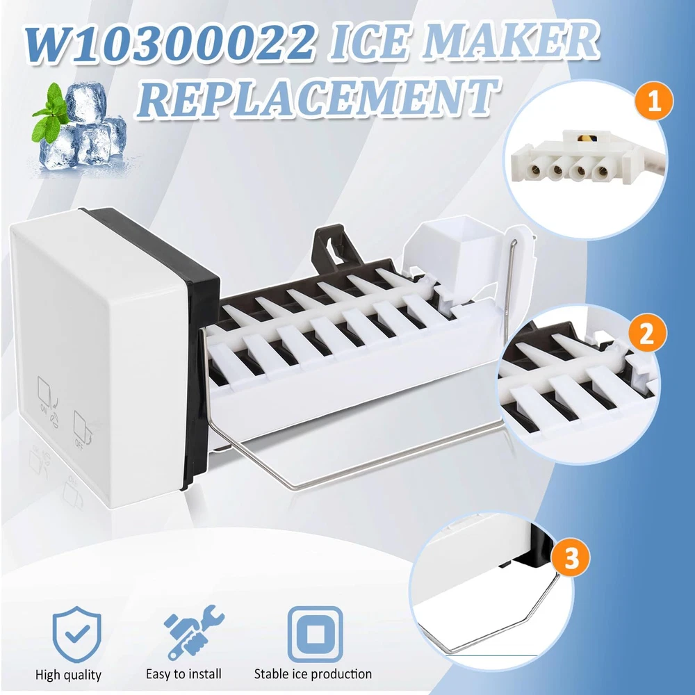 W10300022 Ice Maker Assembly can replaces these parts: WPW10300022 W10122556 W10377190 AP6019085 PS11752389 Replacement Part Models: W10300022 The Ice Maker Replacement replaces these parts: WWPW10300022, W10300022, W10122556, W10377190, RIM0022, 1875826, AH3492269, AP6019085, AP4982689, EA3492269, EAP11752389, PD00016871, PS11752389, PS3492269 Compatibility: The W10300022 ice maker kit is compatible with many models of refrigerators from various brands, such as Whirlpool Kenmore and others. Please refer to the product details for specific models Package Includes: You will receive the ice maker, lift arm, wire harness and other accessories. Extend The Use Time Of The Ice Maker: By replacing the worn or faulty parts regularly, you can solve the problems of the ice maker not working, not making ice, slow ice making, noisy, etc., to prolong the service life of the ice maker, and to make the ice maker run quietly and smoothly. Warm Tips: before installation, please turn off the power and water of the refrigerator, follow the YouTube video above to install; after the installation is completed, the ice maker may take some time (about 24 hours) before it starts to make ice.