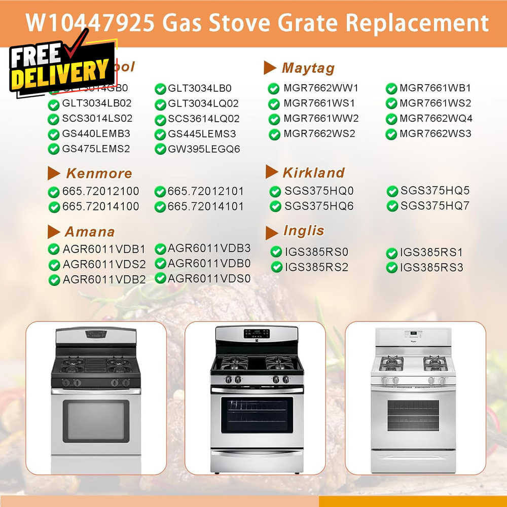 ultimatesavvyshop New Arrivals Add to Favorite View Feedback Contact W10447925 Stove Grates Replacement Gas Range Cast Iron Burner Grate Set 4 Pack… ? PLEASE CONTACT US FIRST BEFORE TAKING ANY ACTION ? If you face any kind of issue , please reach out to us directly . Especially before leaving Negative Feedback, opening an “Item Not Received” case, or starting a Return . ? We are always happy to assist and resolve any problem quickly and professionally! If you have any questions or require assistance, please don’t hesitate to reach out. Description Item model number W10447925 Part Number Burner Grate Batteries Required? No Product Dimensions 3 x 3 x 3 inches Item Weight 11.64 pounds Batteries Included? No Model W10447925 Included Components Burner Grate Extremely Durable - The whirlpool replacement gas range burner grates are made of high-duty upgraded porcelain-enamel cast iron material. Non-magnetic, better corrosion resistance and heat resistance make it more durable and long-life lasting Dimension & Package - Our rack measures 9.17" x 8.34" or 8.89" x 8.34" (L x W), Height is 1 5/8", which can provide a stable surface while you are cooking. Package: 4 pack stove grates. W10447925 Burner Grate Compatible with Whirlpool Part, Replaces Part Number: W10447925 Compatible With Range Surface Burner Grate Number: W10447925, W10166295, W10165803, W10333861A, 8522858, 8522851, 8053455, WP8522858, WPW10166295, WPW10165803, WP8522851, 8522850, 8053904, 8053895, WP8053455, 3196189, 3195900, 8053390, W10333861, W10335352A, W10335352 and more whirlpool stove grate Compatible With Whirlpool Gas Range Models: GLT3014GB0, GLT3014GB1, GLT3014GB2, GLT3014GB3, GLT3014GQ0, GLT3014GQ1, GLT3014GQ2, GLT3014GQ3, GLT3014GT0, GLT3014GT1, GLT3014GT2, GLT3014GT3, GLT3014GZ0 and more. Compatible With Maytag Gas Oven Models: MGR7661WB0, MGR7661WB1, MGR7661WB2, MGR7661WB3, MGR7661WB4, MGR7661WS0, MGR7661WS1, MGR7661WS2, MGR7661WS3 and more. Compatible With Kirkland Gas Range Models: SGS375HQ0, SGS375HQ5, SGS375HQ6, SGS375HQ7 and more Compatible With Amana Gas Oven Burner Models: AGR6011VDB1, AGR6011VDB2, AGR6011VDB3, AGR6011VDS0, AGR6011VDS1, AGR6011VDS2, AGR6011VDS3, AGR6011VDW0, AGR6011VDW1, AGR6011VDW2, AGR6011VDW3 and more. Compatible With Inglis Gas Oven Burner Models: IGS385RS0, IGS385RS1, IGS385RS2, IGS385RS3 and more. Compatible With 665.72012100, 665.72012101, 665.72014100, 665.72014101, 665.72022100, 665.72023100, 665.72024100, 665.72029100 and more PLEASE NOTE - Brand and Models are reference only#, please measure the size before buying. ABOUT US Prior to making any purchase from our store, we’d like to introduce ourselves. My name is Shahzad Yaqub , and I am the proud owner of Epic Emporium Deals , located in the great state of Illinois, USA. I have been an active and trusted eBay seller since Jan 14, 2025 . At Epic Emporium Deals , we are committed to offering competitive prices and top-quality products . Our extensive collection features a wide variety of items, including media such as books, movies, music, and games , as well as electronics, toys, sporting apparel, clothing, tools , and general home and garden essentials —and much more! Your satisfaction is our priority, and we look forward to providing you with an exceptional shopping experience. SHIPPING We are always working hard to ensure your package arrives as soon as possible. Please understand that some factors like weather, high postal traffic, and the performance of shipping companies are outside of our control. We offer free shipping to the lower 48 states and ship within 2 business days of payment, usually sooner. We do not accept P.O. Boxes. Please provide a physical address. For shipping outside of the continental USA, we only use eBay's Global Shipping Program. The item is shipped to IL and then sent to the rest of the world. International customers are responsible for all duties and taxes. Continue to 'check out' to calculate costs for shipping the item to your country. Messages regarding eBay's Global Shipping Program MUST be directed at eBay EXCLUSIVELY. RETURNS We do not accept returns under normal circumstances. However, we will gladly consider a return if the item is received broken or if the wrong size is sent to you. In all other cases, returns will not be accepted. CUSTOMER SATISFACTION We try our very best to make sure every customer is completely satisfied. If there's a problem, message us! We're happy to help.