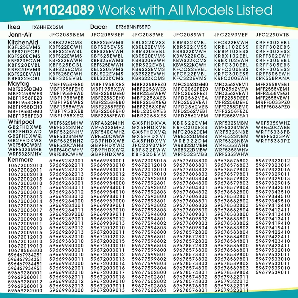 W11024089 Refrigerator Evaporator Fan Motor Compatible with JennAir Kenmore KitchenAid Maytag Whirlpool, Replaces 13062901 W10199049 W10904013 WP13062901 AP6039916 FDQR102M3L ORM-1037K1 etc Product Details Package Dimensions : 3.94 x 3.39 x 2.64 inches; 13.44 ounces Item model number : W11024089 Manufacturer : GREALTH Country of Origin : China Brand: GREALTH Item Weight: 0.38 Kilograms Manufacturer: GREALTH 【Product Overview】W11024089 refrigerator evaporator fan motor. This is a new replacement part 【Quality product】W11024089 refrigerator evaporator fan motor is an OEM part. It can fix abnormal refrigerator temperature problems. It is fully tested to ensure long-term effective operation 【Compatible Brands】W11024089 evaporator fan motor is compatible with Dacor, Ikea, Jenn-Air, KitchenAid, Maytag, Whirlpool, Kenmore refrigerator. Not sure if it's compatible with your refrigerator? Welcome to email us your refrigerator model 【After-sale Service】For any quality issues, you can request to send a new one or a refund. What you buy is not only a product, but also a whole set of our after-sales service. Any questions, just one email, we will always solve for you within 12 hours