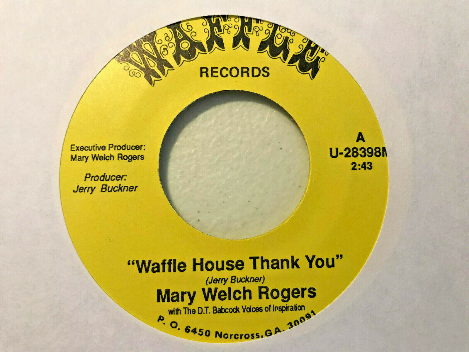 WAFFLE HOUSE JUKEBOX RECORDS SPECIAL BUNDLE!!!!! 10 RECORDS FOR $20 / LIMITED TIME OFFER THESE WAFFLE HOUSE RECORDS ARE PRISTINE 45 RPM PRESSINGS FROM THE PERSONAL COLLECTION OF PRODUCER/SONGWRITER JERRY BUCKNER THAT WERE NEVER LOADED ON THE JUKEBOXES In 1984 Jerry teamed with Mary Welch Rogers to form Waffle Records based in Atlanta, GA. Together they produced a string of original music tracks for Waffle House that are featured on their in-store jukeboxes . Jerry is co-writer and artist for the classic 80's hit "Pac-Man Fever" as released by Buckner & Garcia BUNDLE LIST 1 “There’s 844,739 Ways To Eat A Hamburger At Waffle House” Billy Dee 2 “Overdoing” Mary Welch Rogers 3 “Waffle House Family 1 ” Mary Welch Rogers 4 “ Saturday Night At My Place” Gary Garcia 5 “Waffle House Thank You" Mary Welch Rogers 6 “They’re Cookin’ Up My Order” Alfreda Gerald 7 “Songs About Me” Trace Adkins 8 “Waffle House Hashbrowns I Love You” Billy Dee Cox Alfreda Gerald 9 “Last Night I Saw Elvis At The Waffle House” Danny Jones 10  " Bert" Jason Phelps